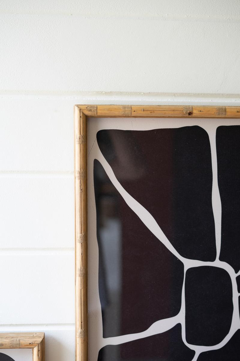 Set Of Two Black & White Framed Abstract Prints Under Glass