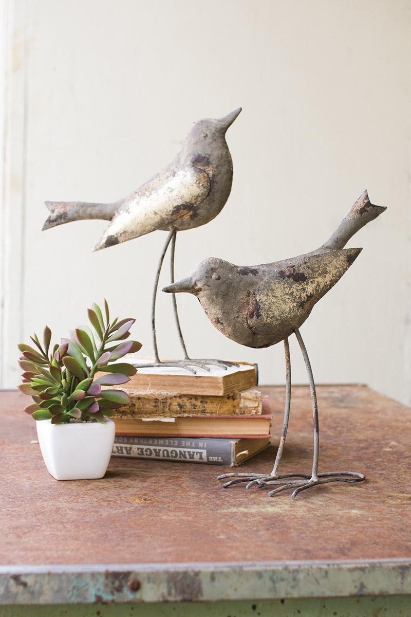 Set of 2 grey rustic metal birds look like they just flew down for a visit. Great neutral color matches any décor!