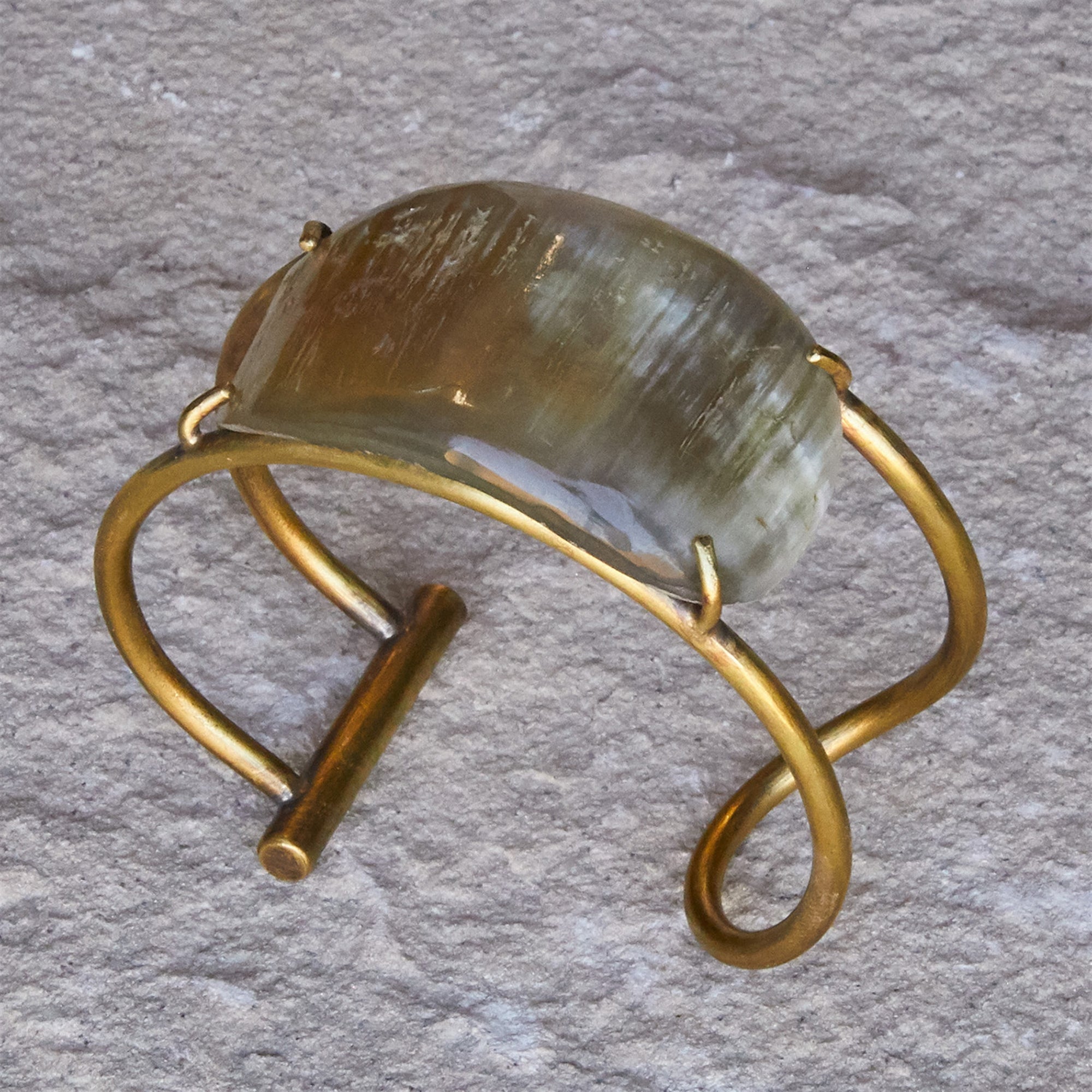 Bayan Wire Cuff with Organic Horn - Light Horn, Brass