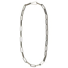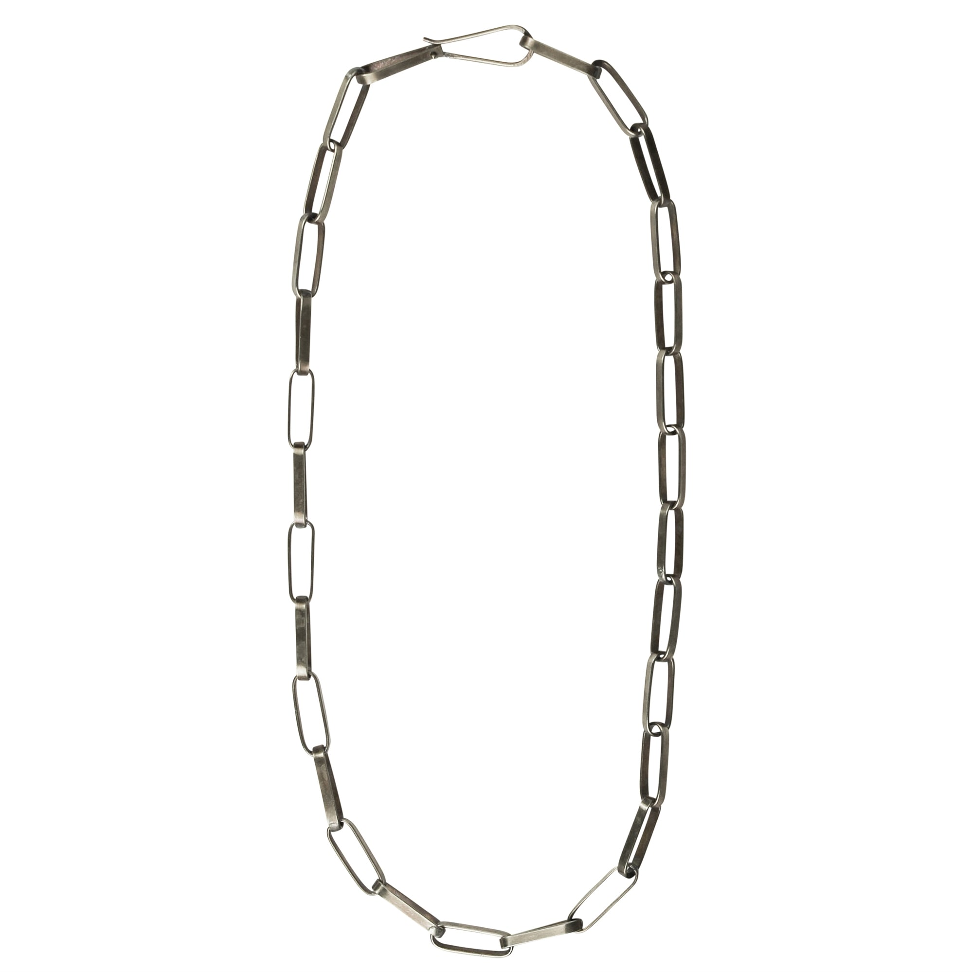 Continual links of silver plated brass create a simple yet statement making necklace. 18” chain