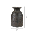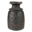 Found wood jugs once used for carrying milk have been cleaned, given hand carved embellishments and a dark stain. The beautiful imperfections add to the character. Each piece is one of a kind, size and shape will vary. One of a kind, Size will vary