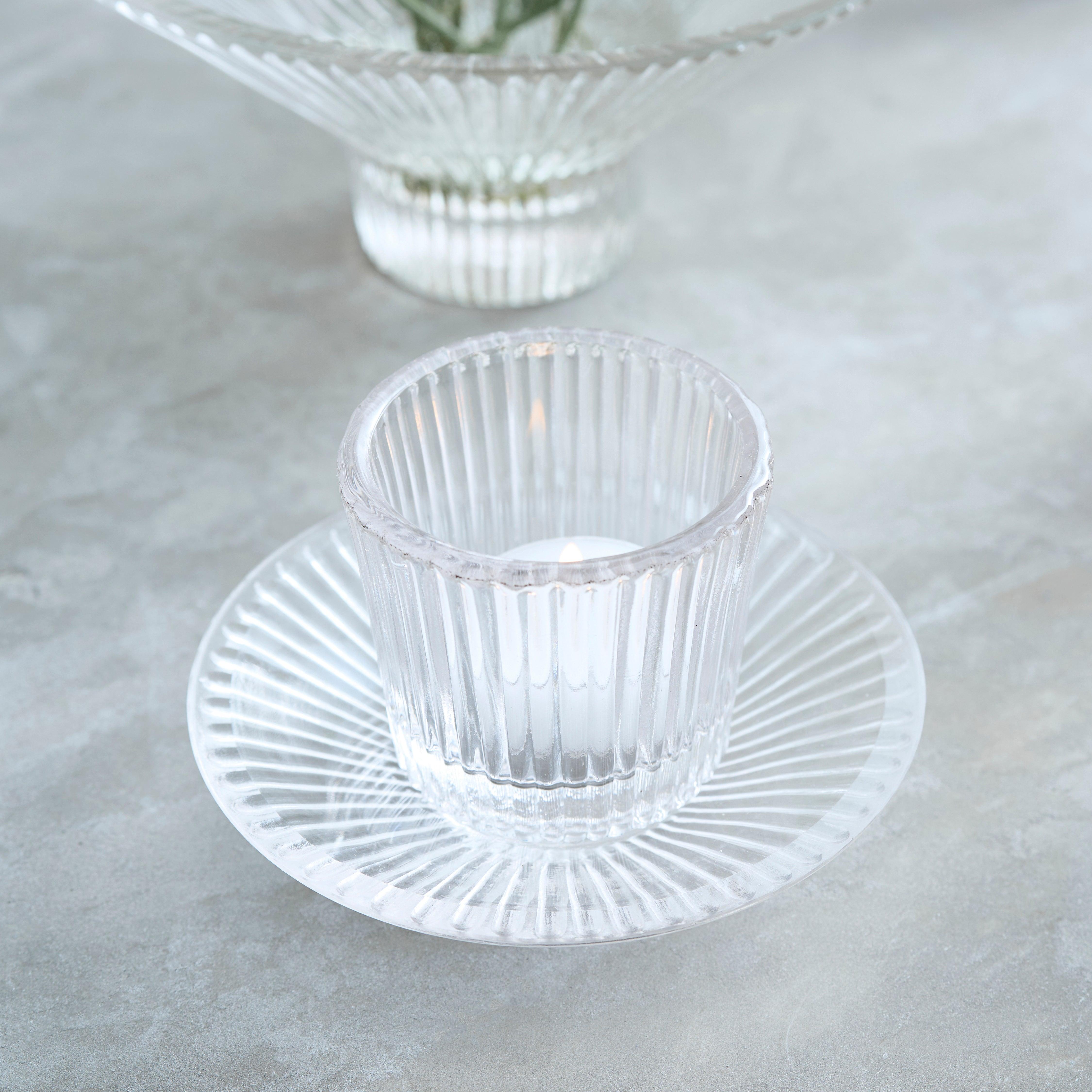 These versatile pressed glass plates feature a ribbing texture on the underside of the shoulder for visual and tactile impact. Petite size is just right for appetizers, tapas or as a bread plate.