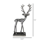 With their stance seemingly crossing a winter path this metal deer with antlers held high will add wintertime decoration to any home, seasonal or not.