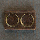 Thin rods of metal are rolled flat to create these orbital forms and geometric shapes. 2.25"