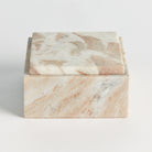 Honed to a semi-matte finish, this stunning marble is specifically known for its unique dark brown to light brown broad lines. The clay minerals found in this particular marble are what gives our square lidded box this one-of-a-kind brown veining. A beautiful accent atop home office desk, bookshelf or entry console.