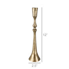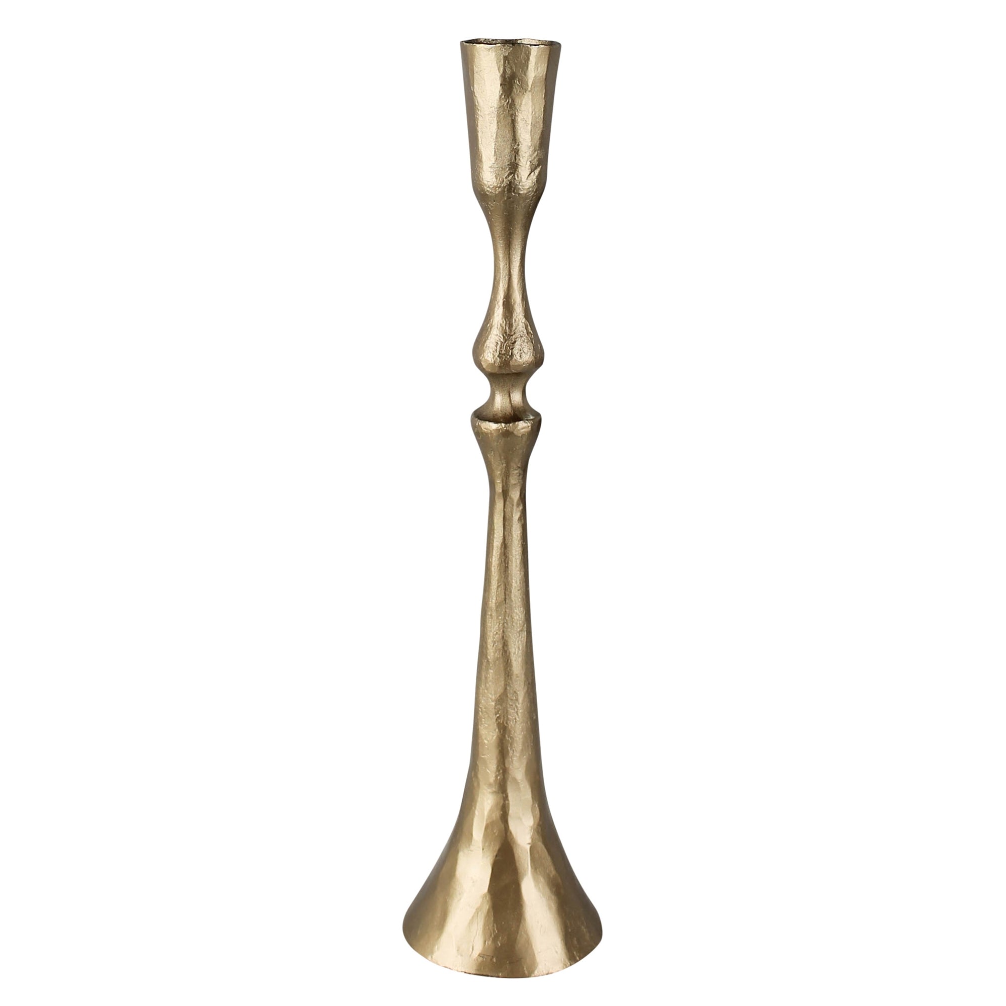 Cast of metal with a slim taper holder and flared bottom, this tall and slim taper holder is strong in character when solo and beautiful when amassed. Brass plated.