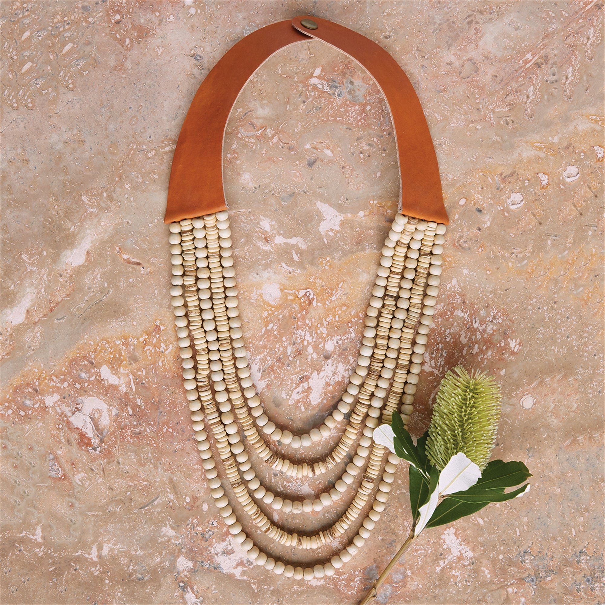 Obispo Necklace, Leather & Wood Bead