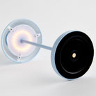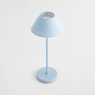 -Light Blue;-Easy touch On/Off and brightness settings: Candlelight (2200k), Warm White (2600k), Cool White (3000k);-Light longevity at full charge: 10 hours at full light intensity;-Total lumens: 200;-Charge time: 6 hours;-Charging station with USB- A cord included;-Shade material: linen;-IP44 rated for damp conditions