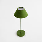 -Dark Green;-Easy touch On/Off and brightness settings: Candlelight (2200k), Warm White (2600k), Cool White (3000k);-Light longevity at full charge: 10 hours at full light intensity;-Total lumens: 200;-Charge time: 6 hours;-Charging station with USB- A cord included;-Shade material: linen;-IP44 rated for damp conditions