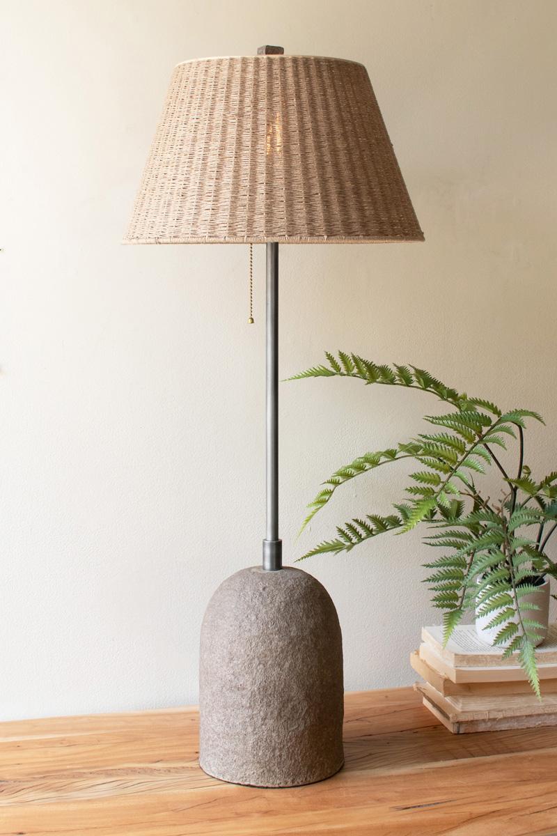 Table Lamp With Paper Mache Base And Rattan Shade 36"T