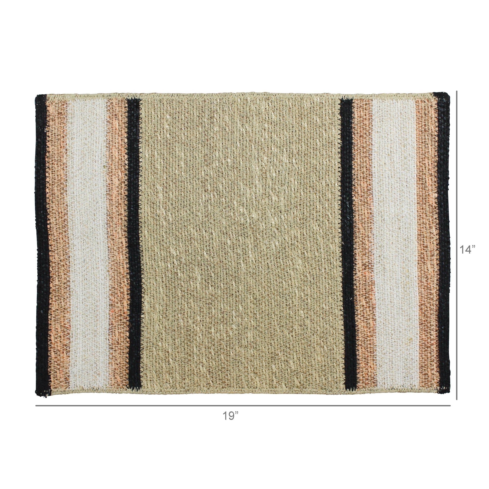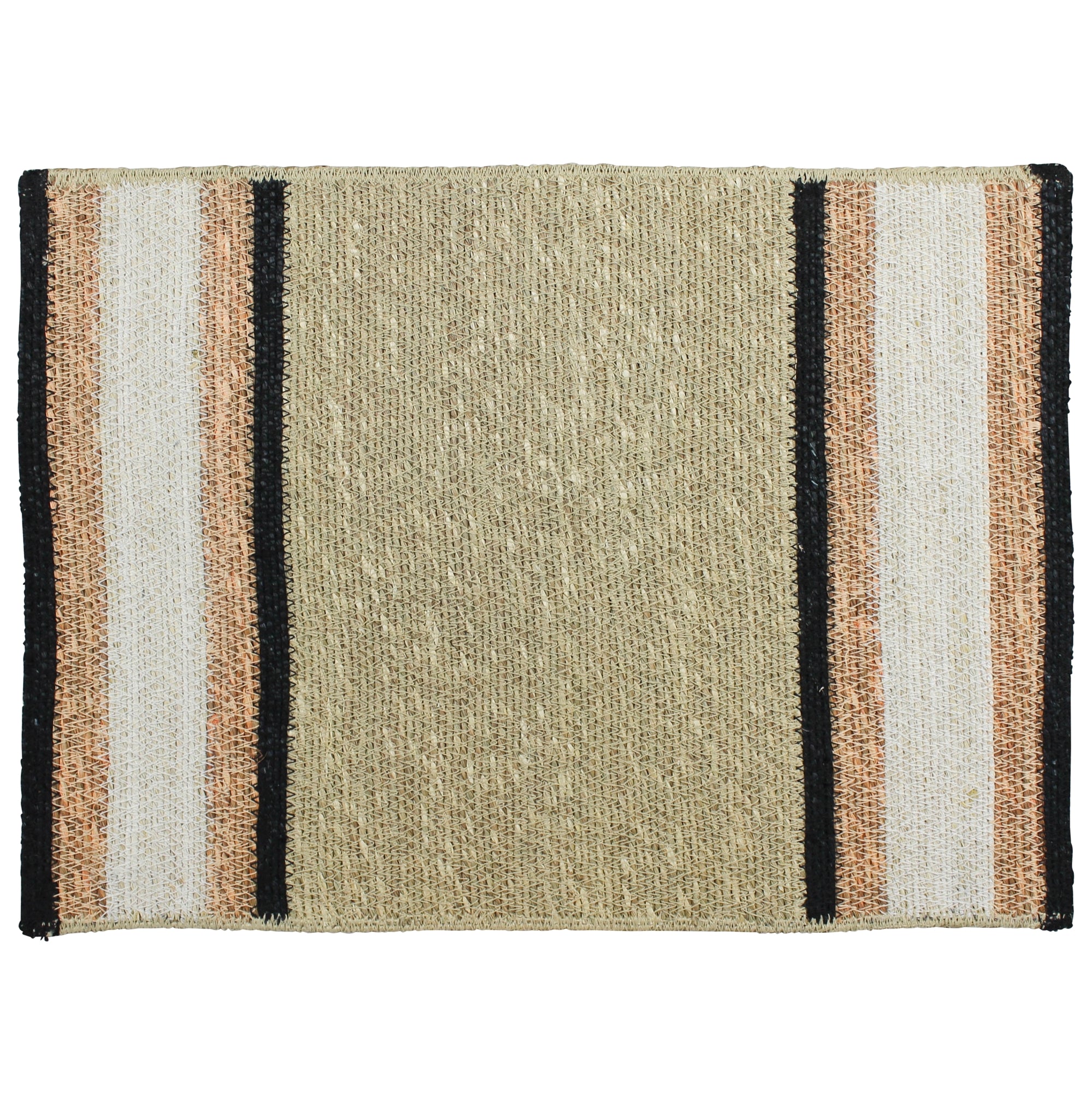 Rectangular placemat crafted from woven seagrass with cotton stitching, offering a blend of rustic texture and subtle elegance. Durable and eco-friendly, it adds a natural charm to any table setting, perfect for everyday meals or special occasions.