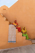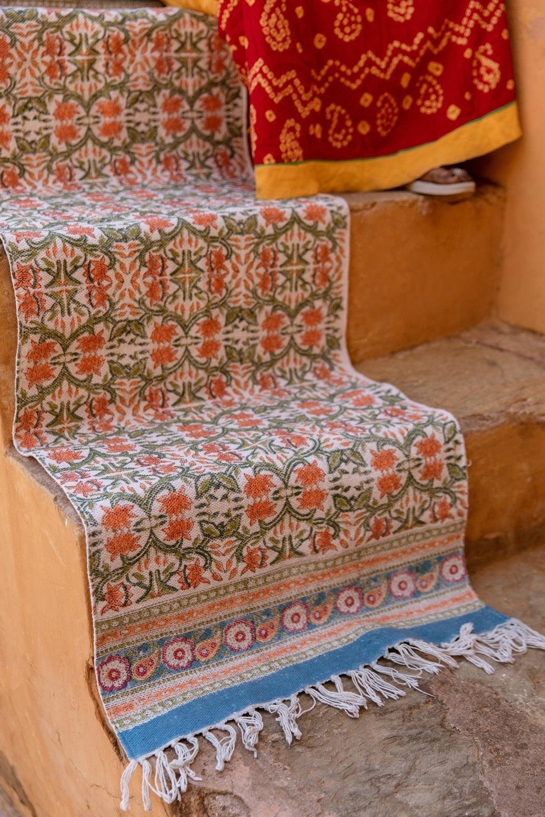 Each rug is handmade, requiring attention from 4 artisans, including wood carvers, block printers, weavers, and dye specialists.