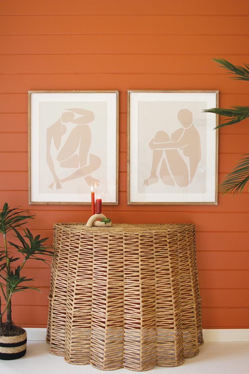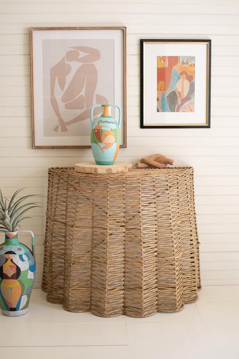 This rippled seagrass demi-lune table is a one-of-a-kind piece made in Haiti that will weave its way into your heart. Add it to a girl's room as a skirted side table, or complete your beach house look in any room.