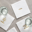 Heavy-weight cotton cocktail napkins feature a universal expression in debossed gold foil. Cocktail napkin dimensions are 5” x 5”. Sold in sets of 20.
