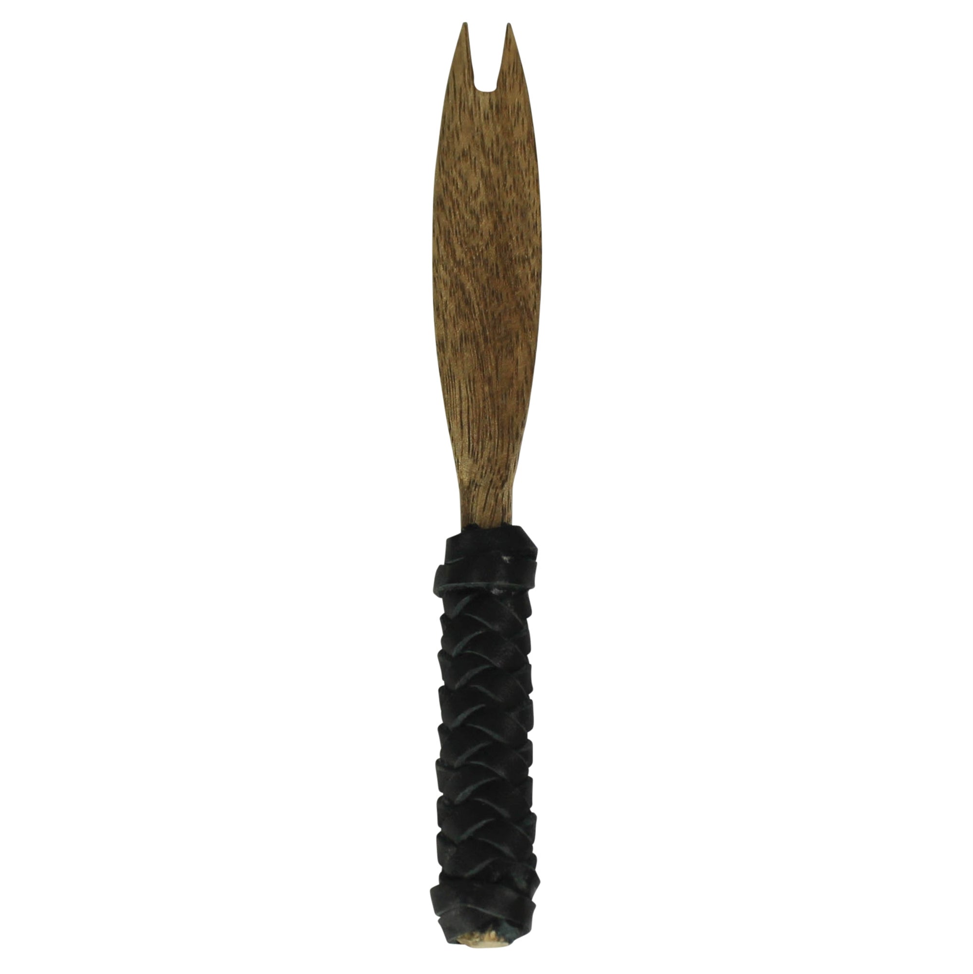 Burke Cocktail Pick, Wood with Black Leather Handle