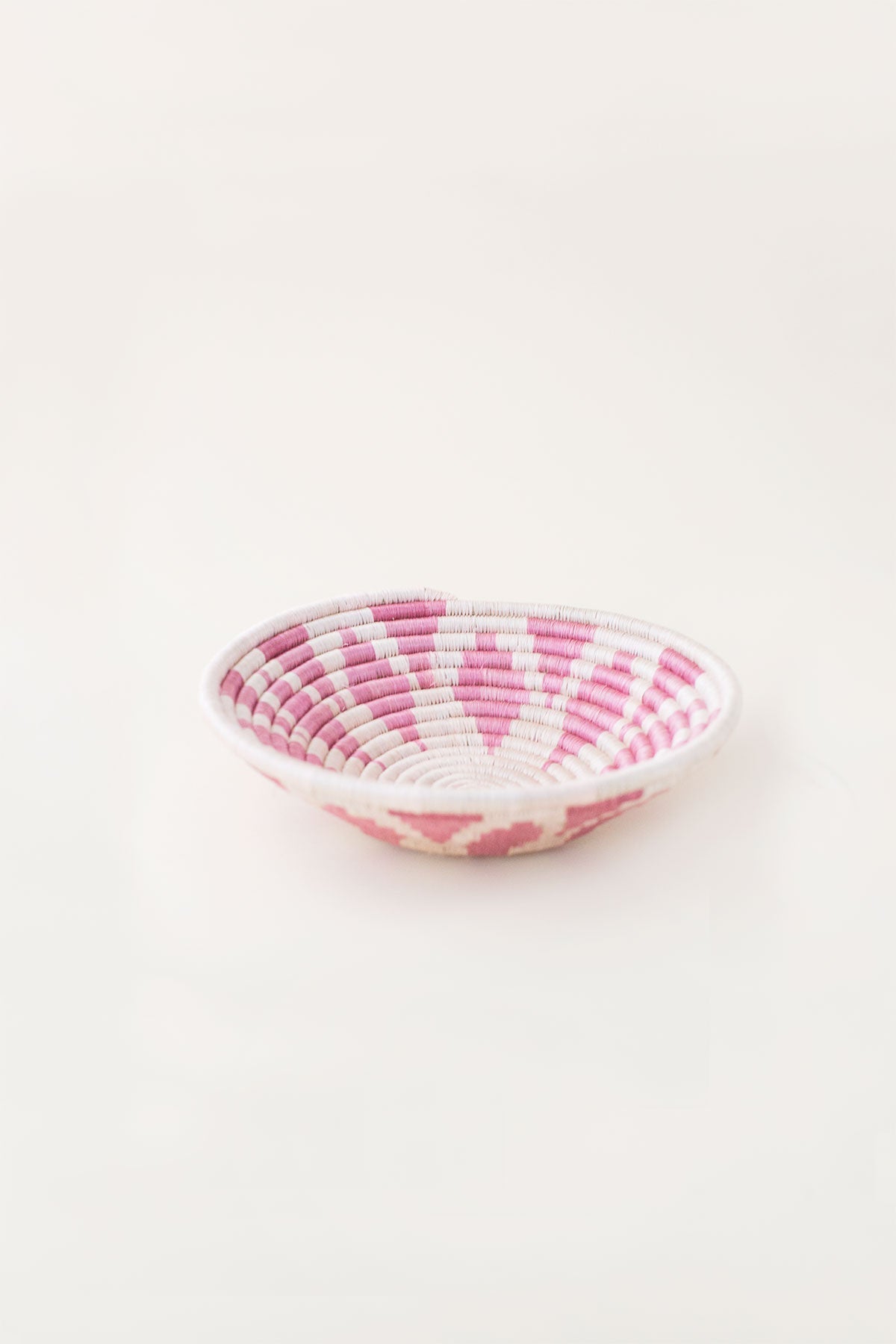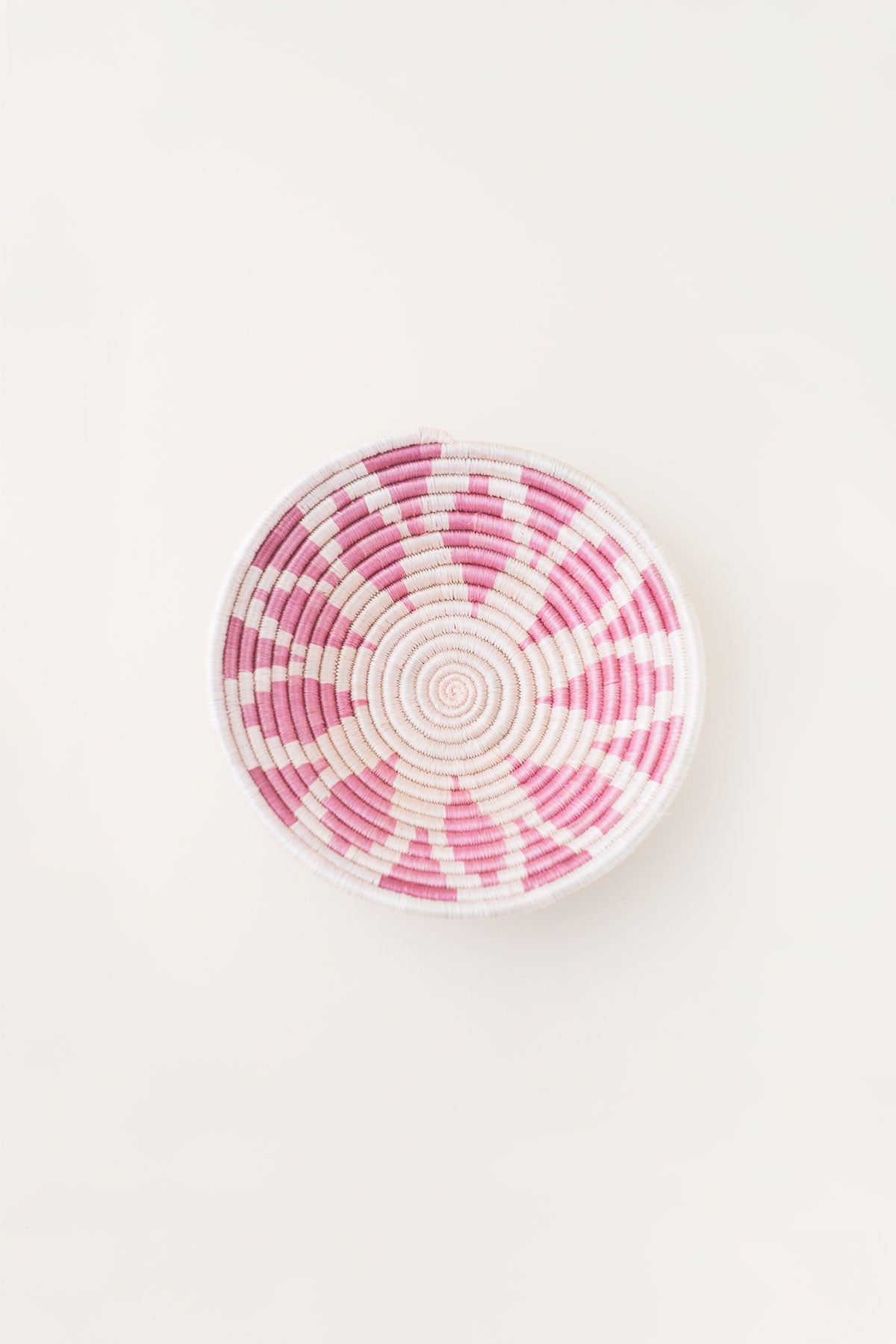 One of our best-selling signature mini plateau baskets handcrafted in Rwanda with a time-honored weaving technique passed down from generations of artisans