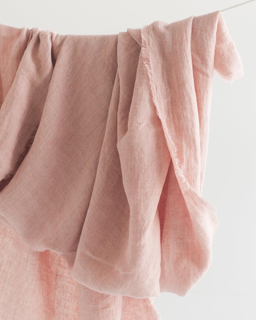 This versatile stone washed linen blanket is a generously sized 84 x 60 inches and is the perfect weight and softness for those quiet, cozy moments at home. Frayed edges add texture and depth. Colors may slightly vary due to small-batch dying.