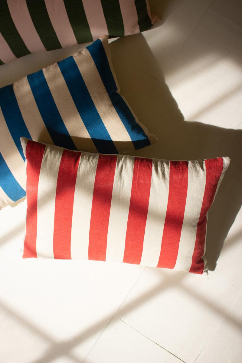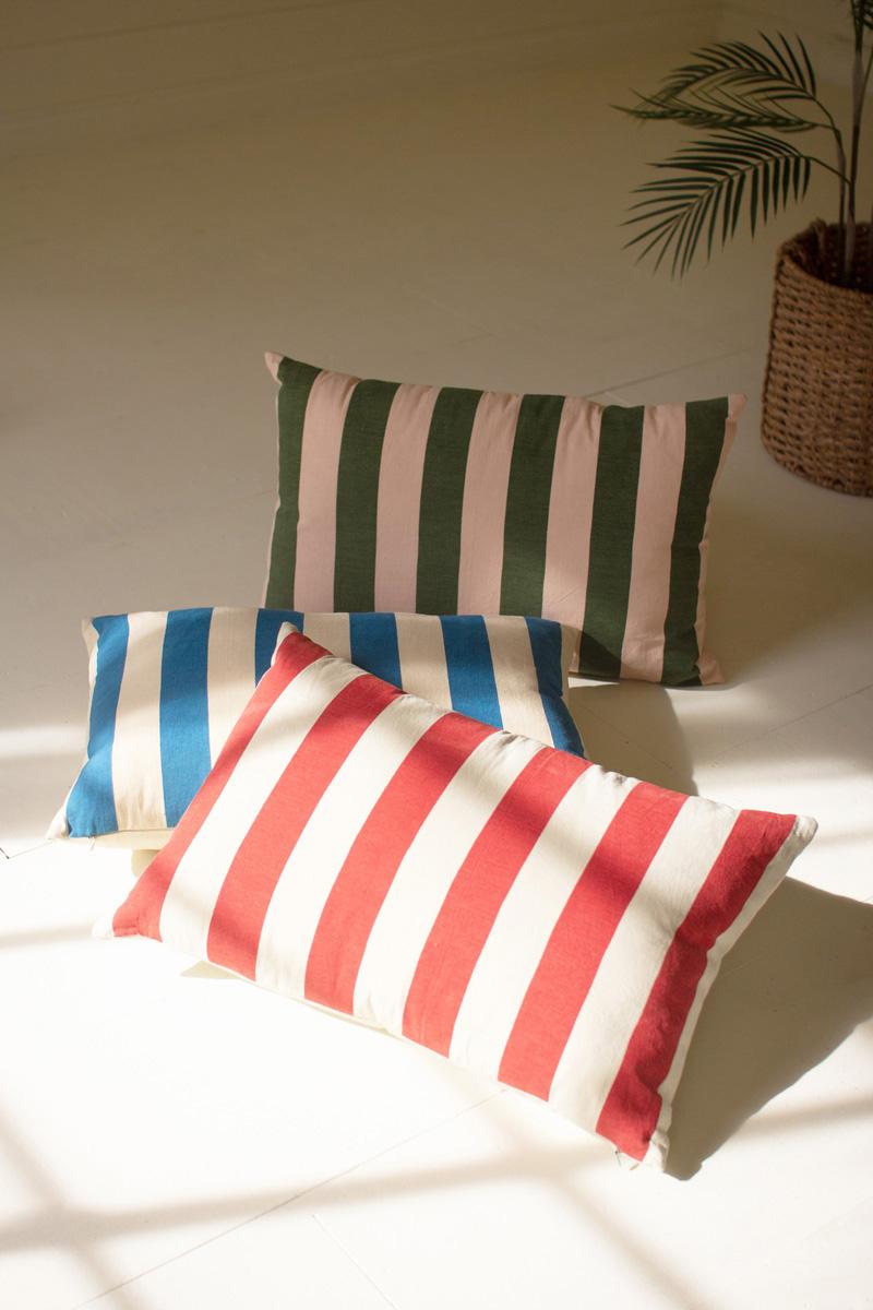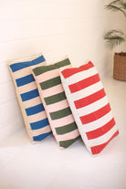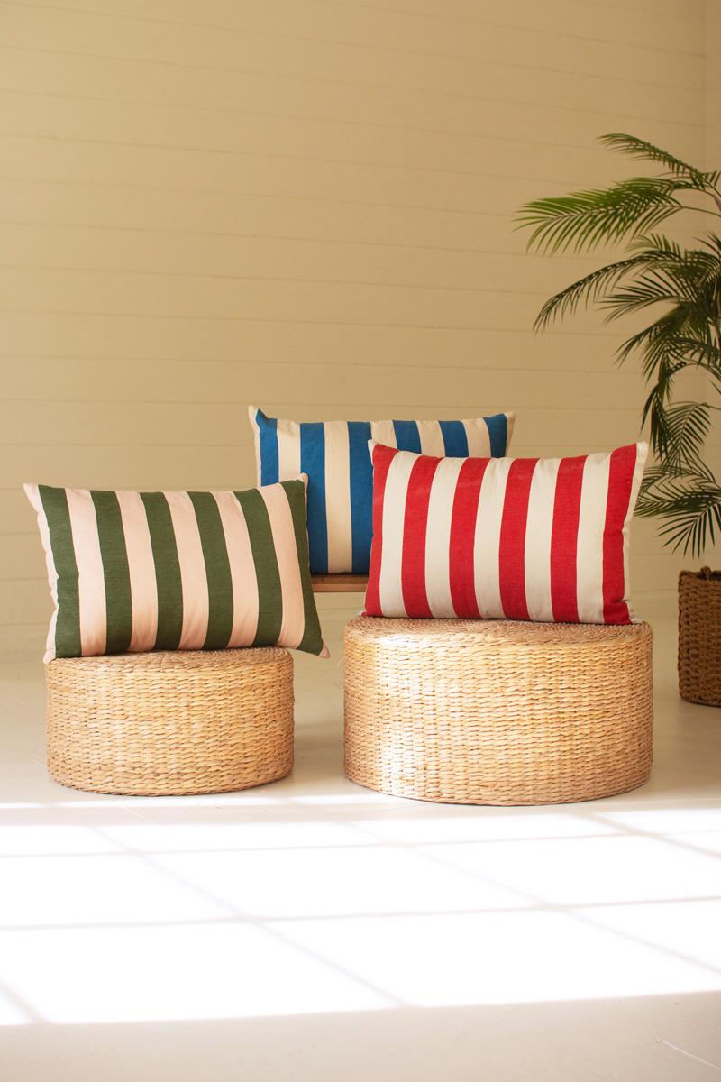 Set Of Three Cotton Printed Striped Pillows One Each Color 16 X24 One Each Color