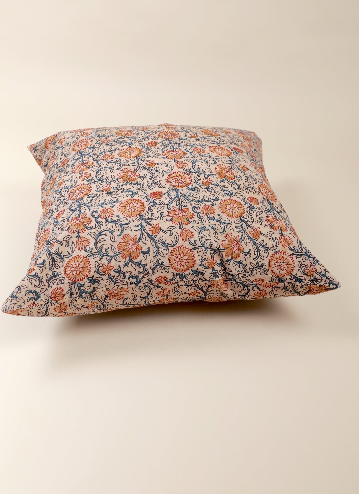 Brighten up your living space with our Sunset Horizon Pillow Cover. Featuring vibrant kalamkari patterns in a harmonious blend of orange, blue, and beige this pillow cover brings a pop of colour and artisanal charm to any living space.