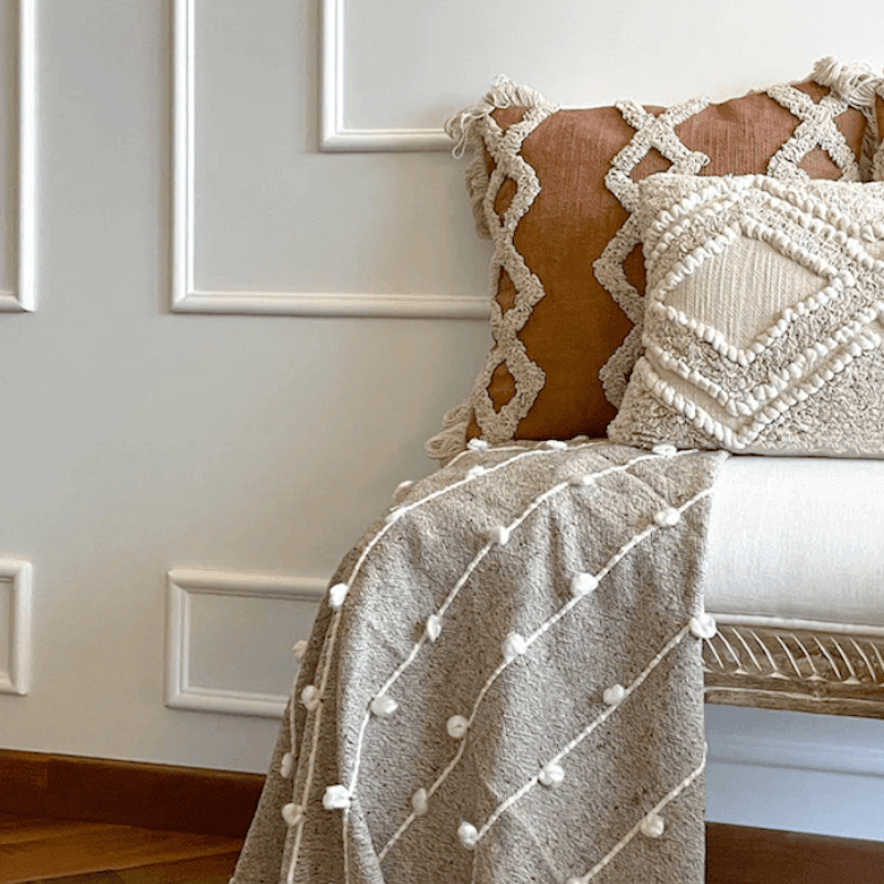 Add warmth, texture, and style to your home with our Textiles Collection. Thoughtfully curated for both comfort and design, our selection of bedding, throw pillows, throws, towels, and table linens brings effortless elegance to any space. Whether you're layering your bed for a cozy retreat, styling your sofa with plush accents, or elevating your tabletop with refined linens, these versatile textiles are the perfect finishing touch.