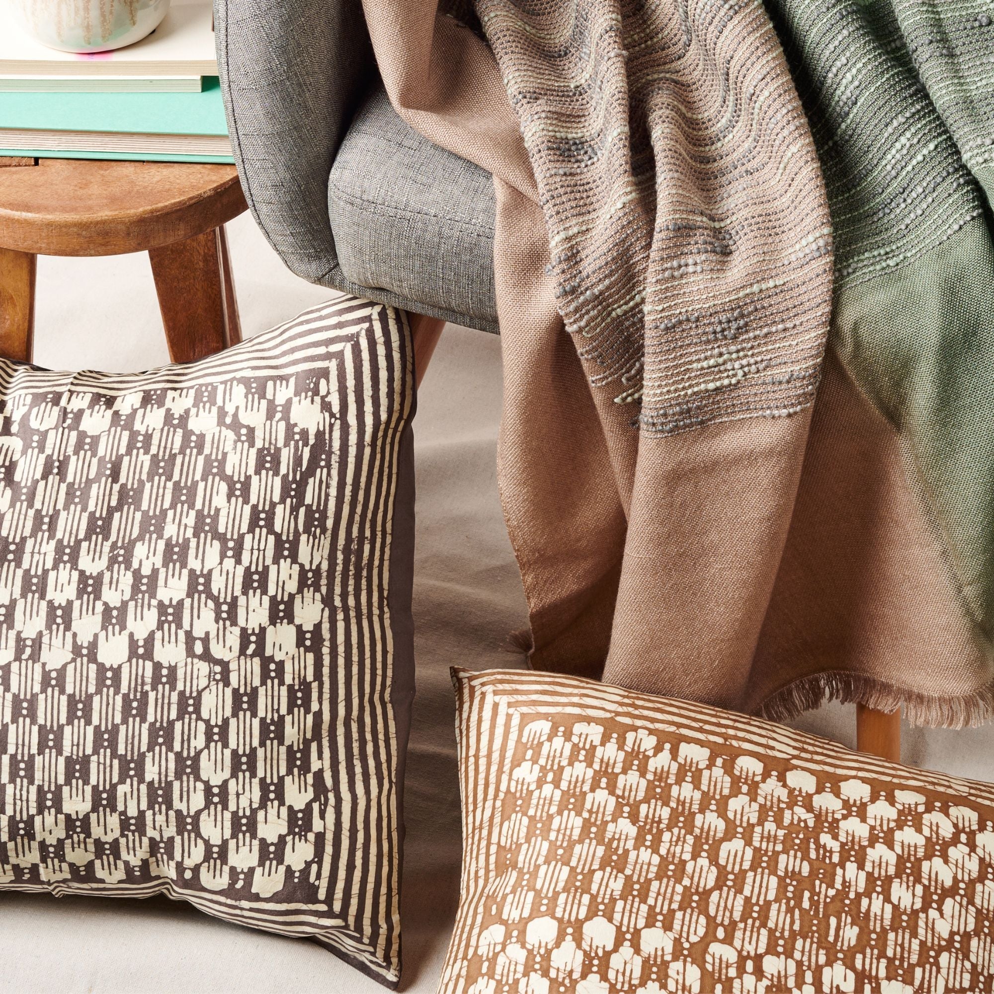 Add warmth, texture, and style to your home with our Textiles Collection. Thoughtfully curated for both comfort and design, our selection of bedding, throw pillows, throws, towels, and table linens brings effortless elegance to any space. Whether you're layering your bed for a cozy retreat, styling your sofa with plush accents, or elevating your tabletop with refined linens, these versatile textiles are the perfect finishing touch.