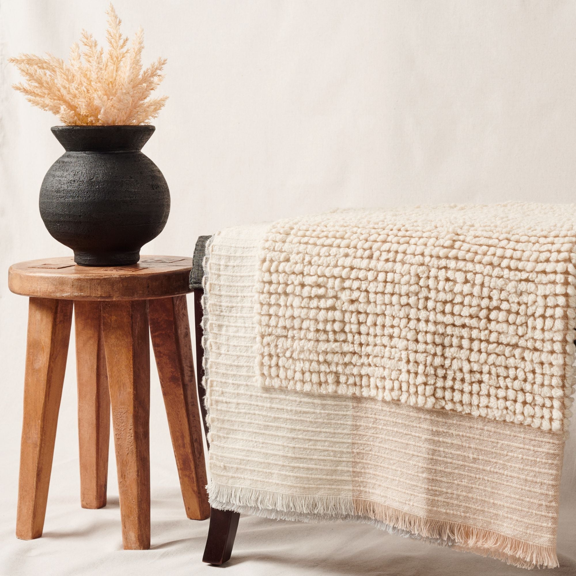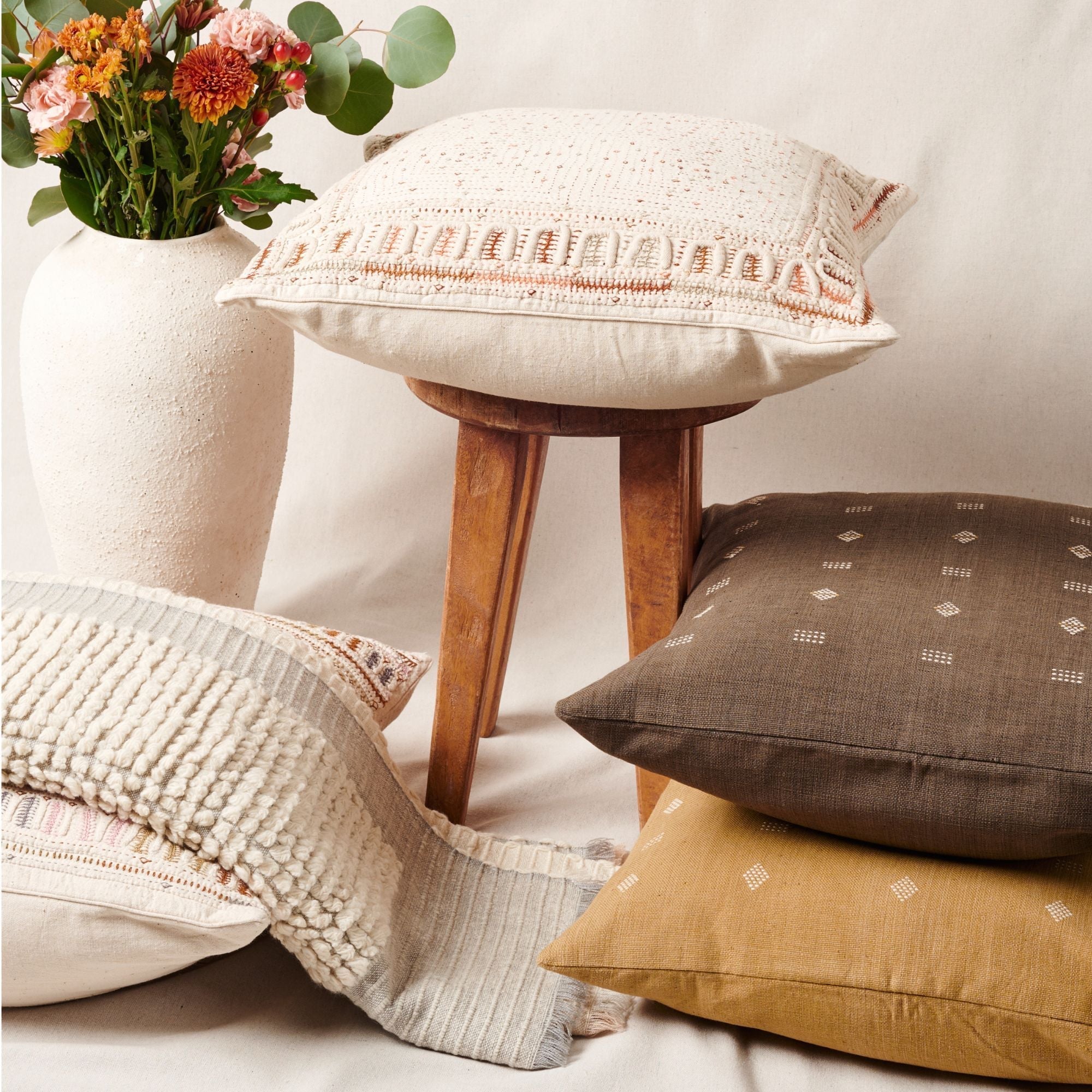 Add warmth, texture, and style to your home with our Textiles Collection. Thoughtfully curated for both comfort and design, our selection of bedding, throw pillows, throws, towels, and table linens brings effortless elegance to any space. Whether you're layering your bed for a cozy retreat, styling your sofa with plush accents, or elevating your tabletop with refined linens, these versatile textiles are the perfect finishing touch.