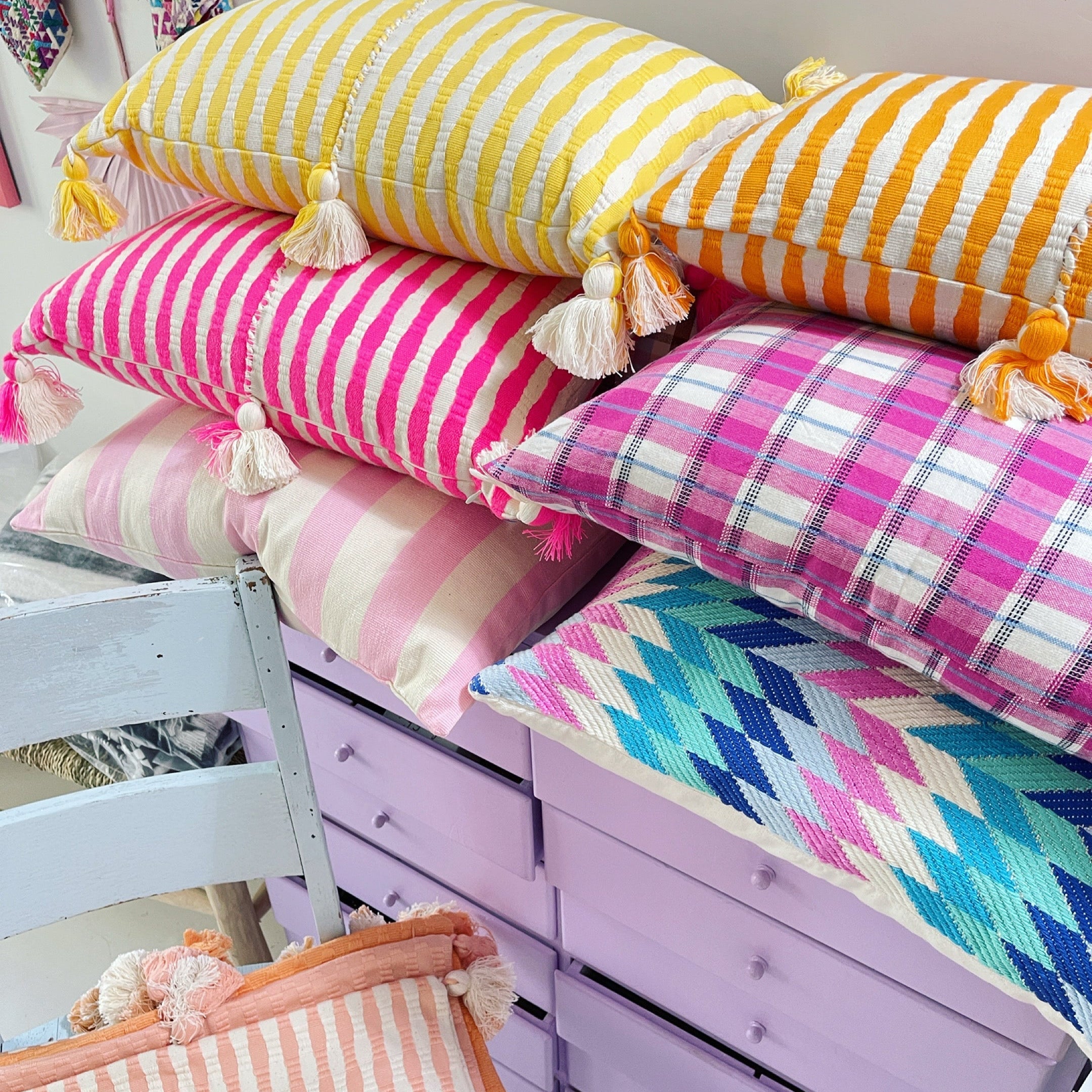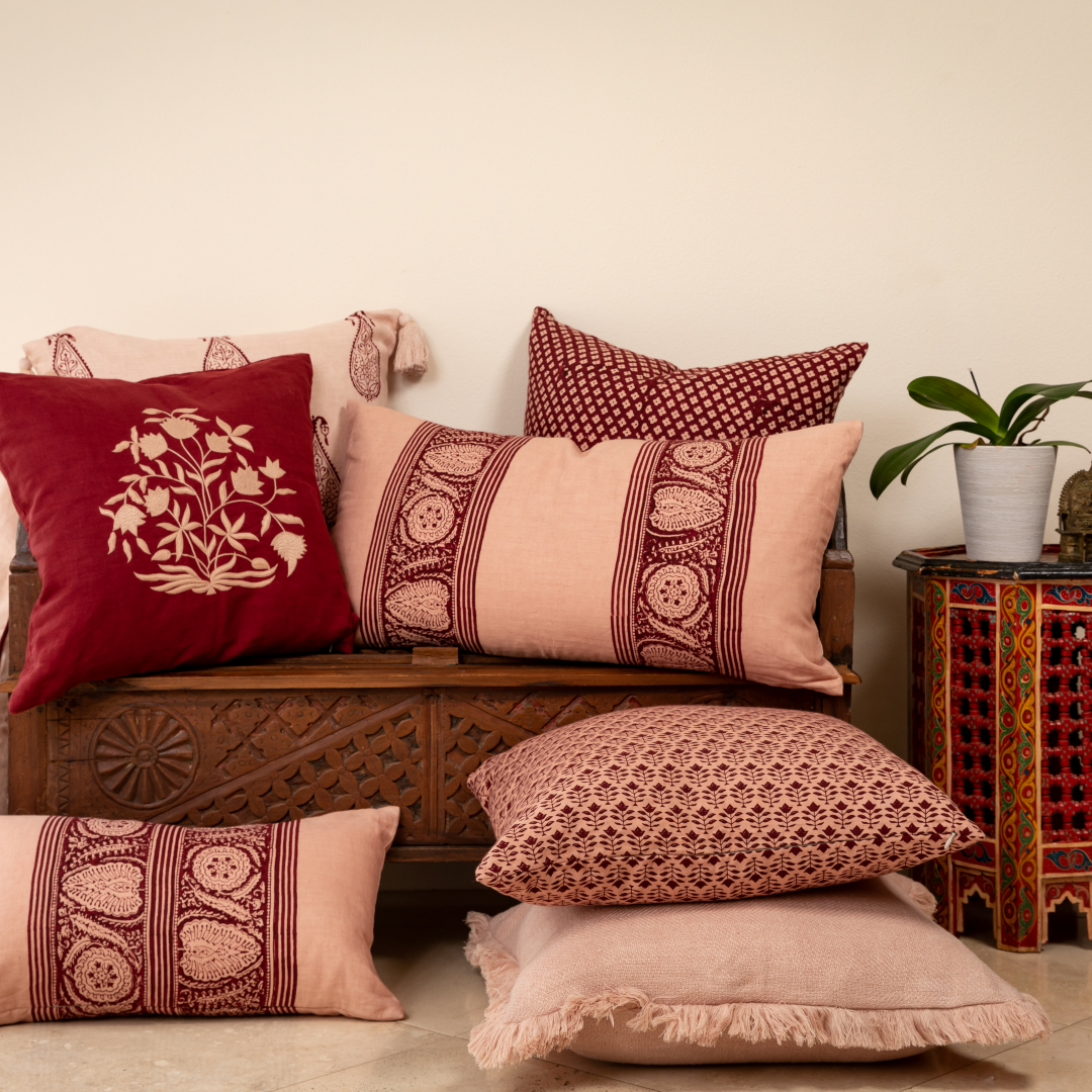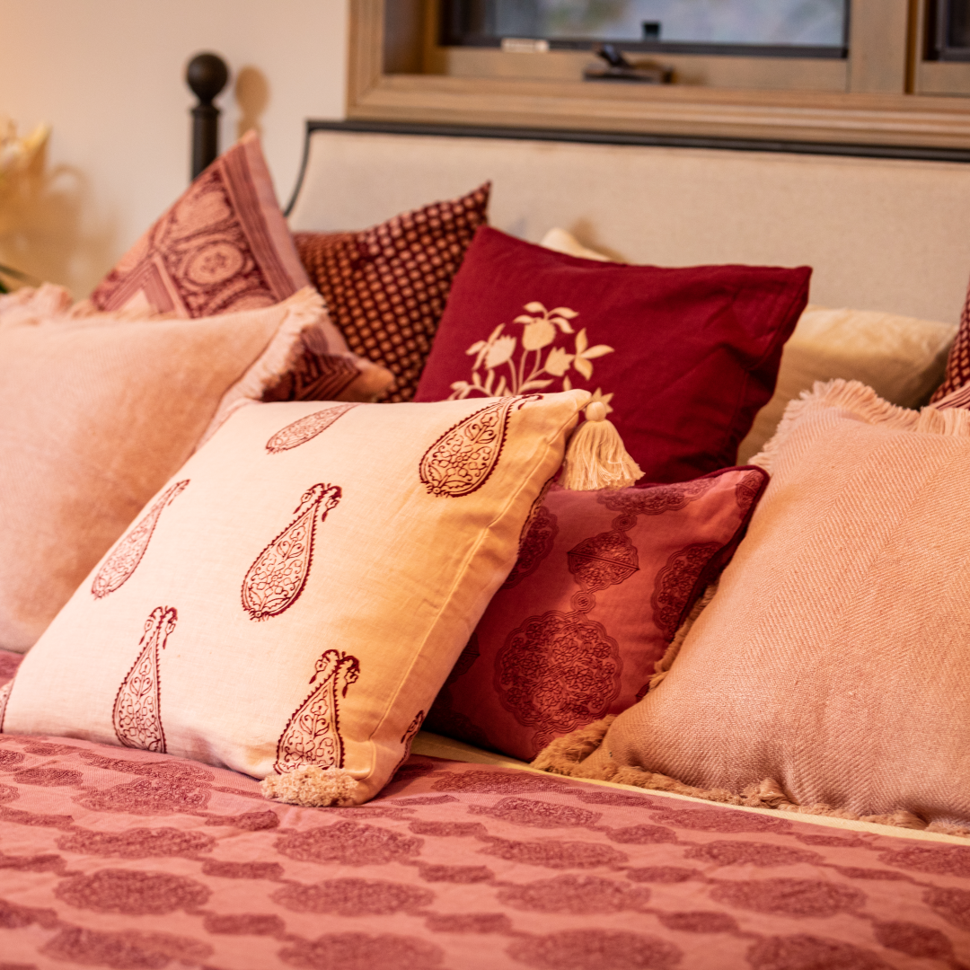 Add warmth, texture, and style to your home with our Textiles Collection. Thoughtfully curated for both comfort and design, our selection of bedding, throw pillows, throws, towels, and table linens brings effortless elegance to any space. Whether you're layering your bed for a cozy retreat, styling your sofa with plush accents, or elevating your tabletop with refined linens, these versatile textiles are the perfect finishing touch.