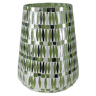 Pieces of glass and mirror are hand cut and laid into intricate patterns then offset by white grout in our updated take on mosaic. Lustrous with a candle or stellar with floral.