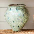 Handcrafted by skilled artisans, each piece is an original and varies in size and color. Dust with dry cloth. Protect fine furniture by lining the interior of the pottery when necessary. Decorative interior use only.