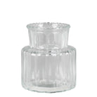A trio of small glass vases, each uniquely textured for a touch of artistic charm. Perfect for showcasing your favorite blooms or adding a subtle elegance to any space with their delightful craftsmanship. Sm: 3x3x3.05, Med: 2.25x5.25, Lrg: 3x3x6, Set of 3: $2.50, $3.50, $4.00