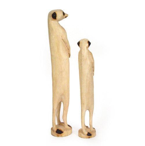 Artists scattered throughout Zimbabwe, mainly in remote rural areas, create Mbare's wood sculptures. As indigenous hard woods became increasingly scarce, we focus on developing products made from non-indigenous, non-endangered Jacaranda wood. Much care is taken in the carving and finishing of a product, and this same care is extended to the selection, maintenance and delivery of these fabulous one-of-a-kind sculptures. Carved from a single piece, these wood animals are beautifully polished and carefully crafted. Take these quirky meerkats home today!