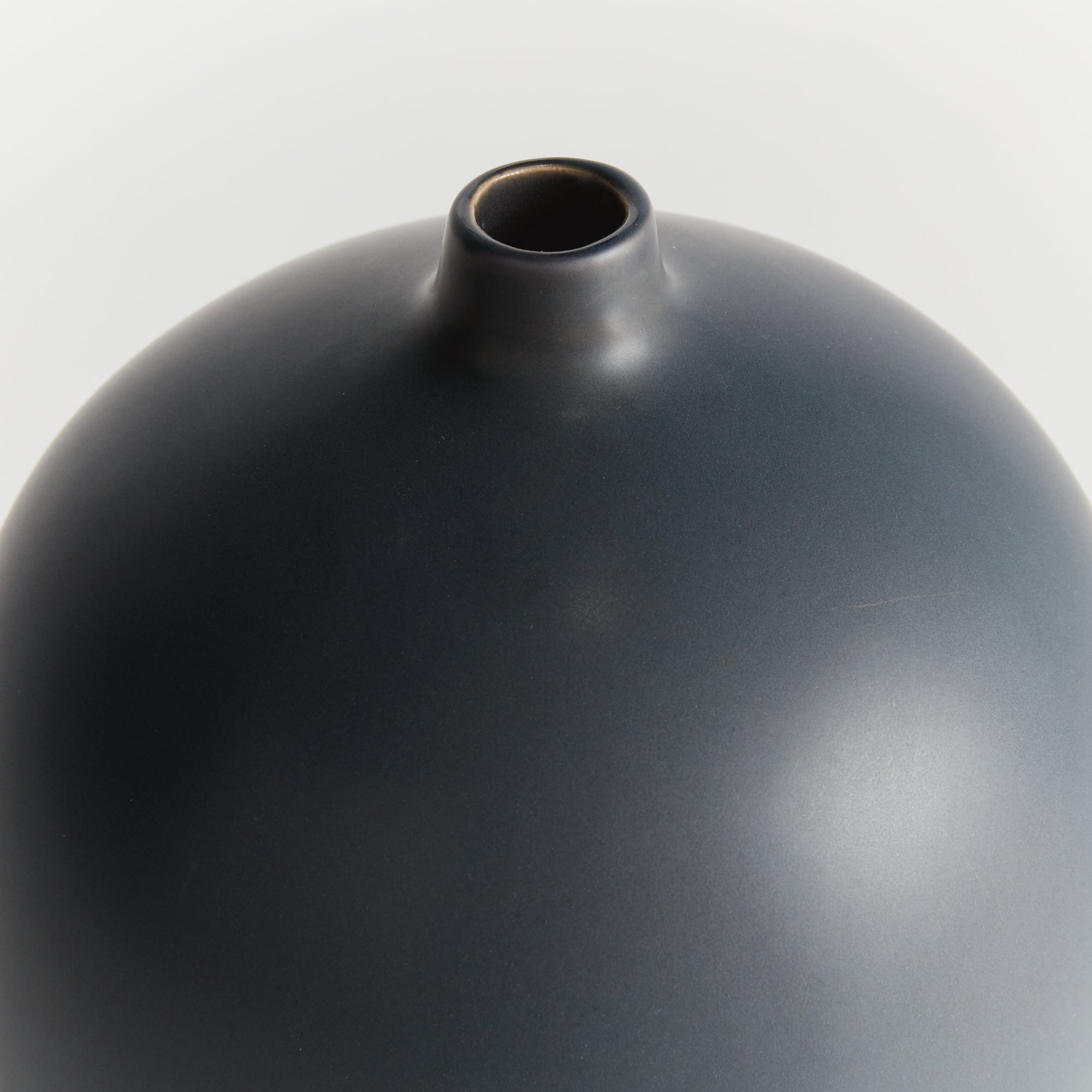 Simple in form with a modern aesthetic, this vase is the definition of less is more. Finished in a smooth dark navy, matte glaze, it brings a calm, tranquil feel to any modern space. Add a dramatic faux stem for added height, or display as is for a sophisticated look.