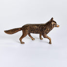Made of a heavy cast aluminum, this sly fox is on the prowl. Definitely a sculpture worthy of a prime bookshelf spot. With realistic signature features, a stately addition to side table or ottoman, as well.