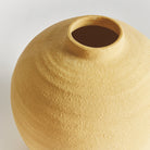 A classic rotund shape and a very narrow opening makes this terracotta vase perfect for a single branch or tall faux floral stem. The cold-finish soft yellow color of this beauty is sure to brighten any space .
