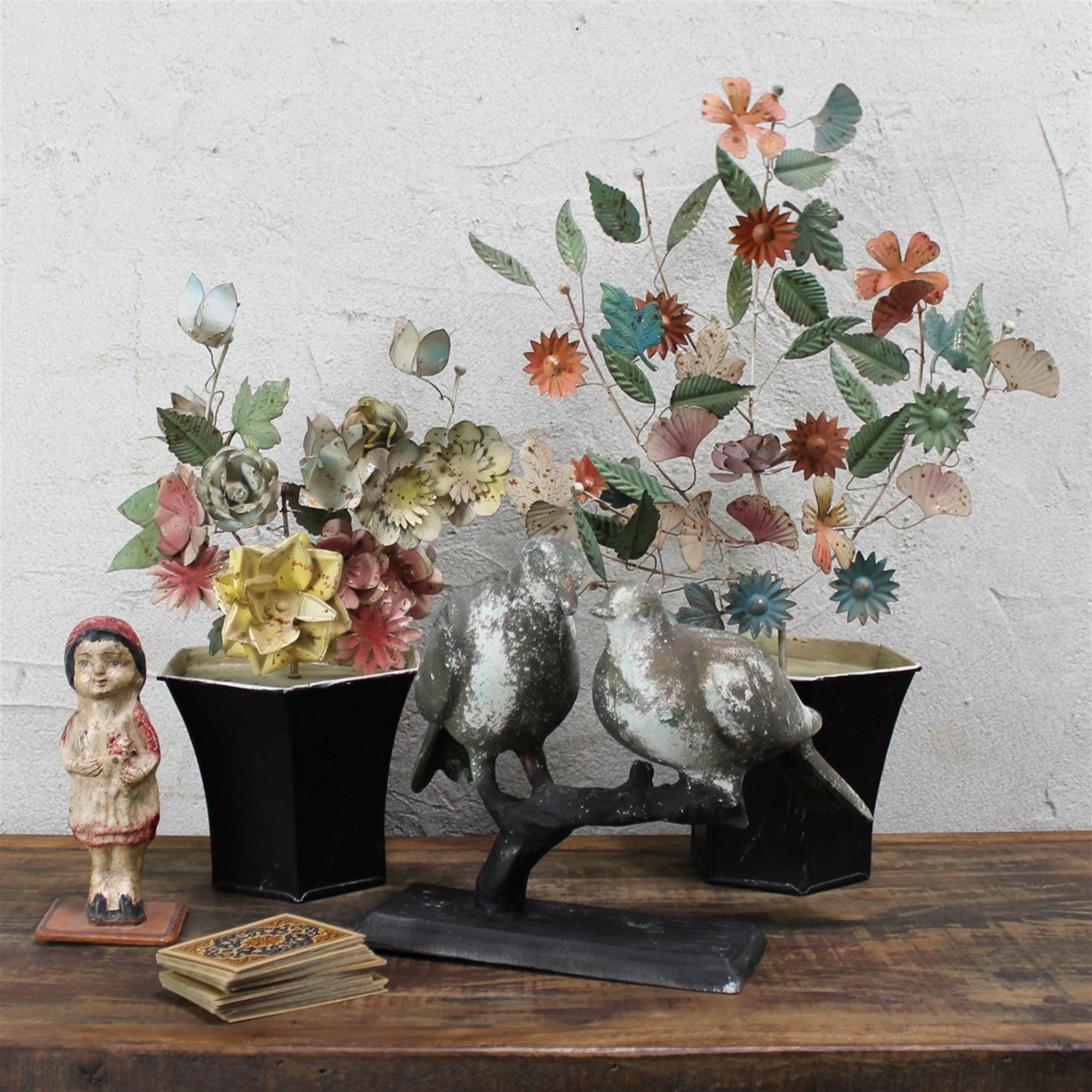Nature and modernism take each other’s hand in the design of this bird. Cast of aluminum with a hand applied green patina finish.
