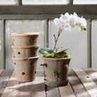 This rustic terra cotta saucer is given its unique character by using a centuries old, handmade process using canvas lined molds and traditionally fired kilns then rubbed by hand with dried moss and let to sit outdoors to naturally age which gives it a one-of-a-kind natural patina. Each piece is distressed using old clay to add texture and individually handled so natural ware such as gentle chips and variation in color are to be expected and embraced. Wipe with dry cloth