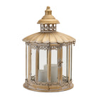 Bring timeless charm and warm ambiance to your space with this 20-inch metal and glass lantern. Designed with an ornate domed top, delicate filigree trim, and a distressed gold finish, it blends vintage elegance with a touch of grandeur. The clear glass panels showcase your candles beautifully, casting a soft glow that’s perfect for cozy evenings, festive gatherings, or stylish everyday décor.