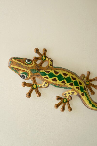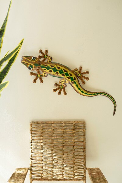 Hand Hammered Recycled Painted Metal Gecko Wall Hanging