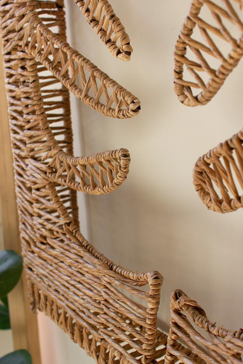 Woven Seagrass And Iron Leaf Wall Panel