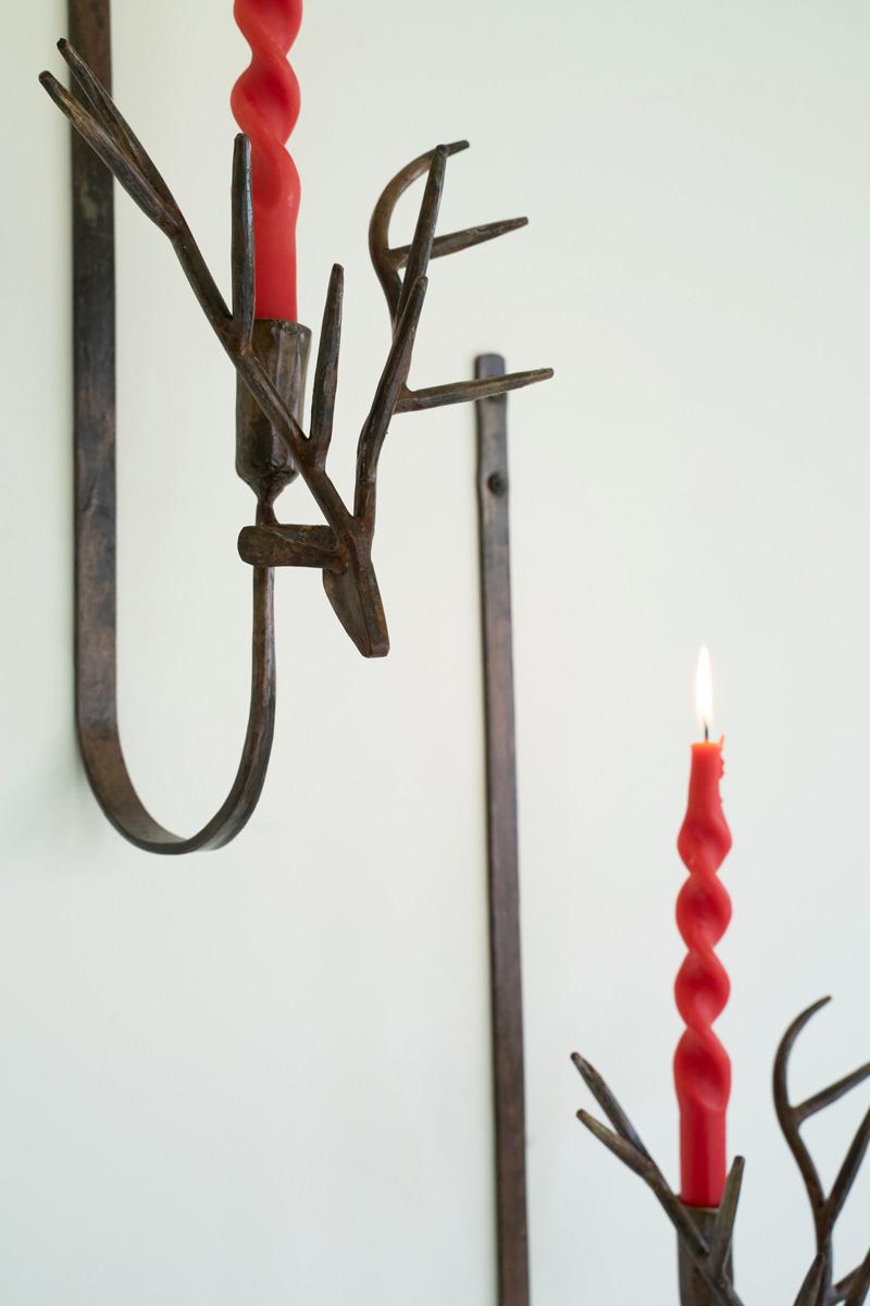 Set Of Two Forged Rustic Brass Deer Taper Wall Sconces
