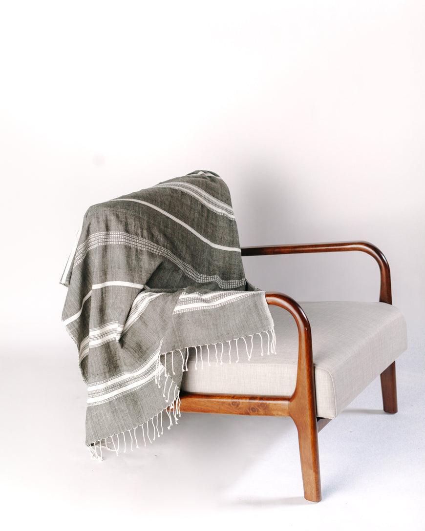 Lightweight and super-soft, this is easily the most versatile home textile ever. Its size works perfectly as a cozy wrap or decorative throw and our signature Aden striped design compliments any decor. And did we mention it's also the perfect travel accessory? Hand-spun Ethiopian cotton adds a uniquely rich texture that will continue to soften and become more absorbent with each wash/dry.