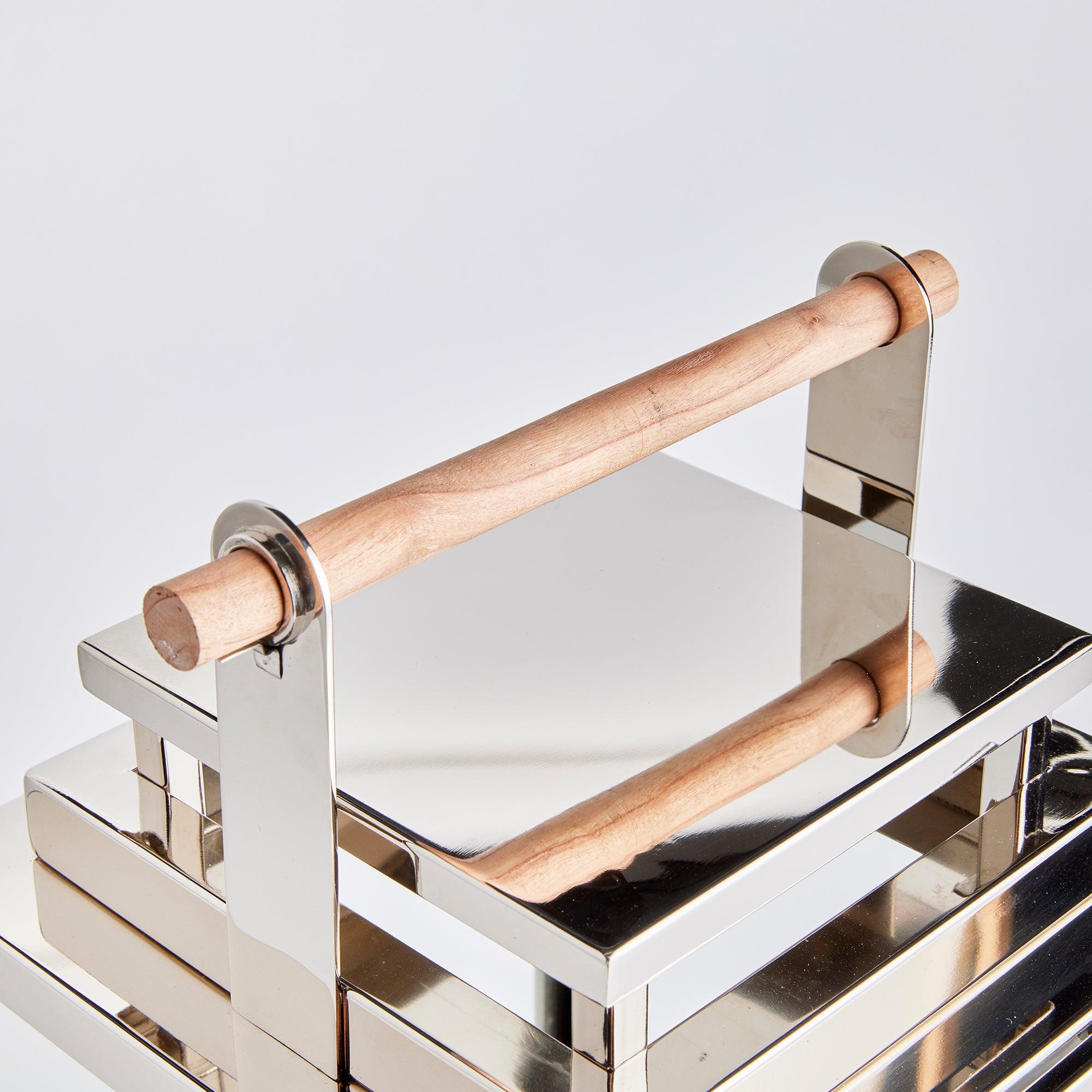 -Nickel;-Stainless steel body powder-coated for exterior use;-Teak handles;-Candle not included