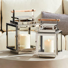 With a teak handle, wide glass panes and tailored square profile, this outdoor lantern is a handsome look for patio, porch or lanai. An exclusive chrome design you won't see anywhere else.