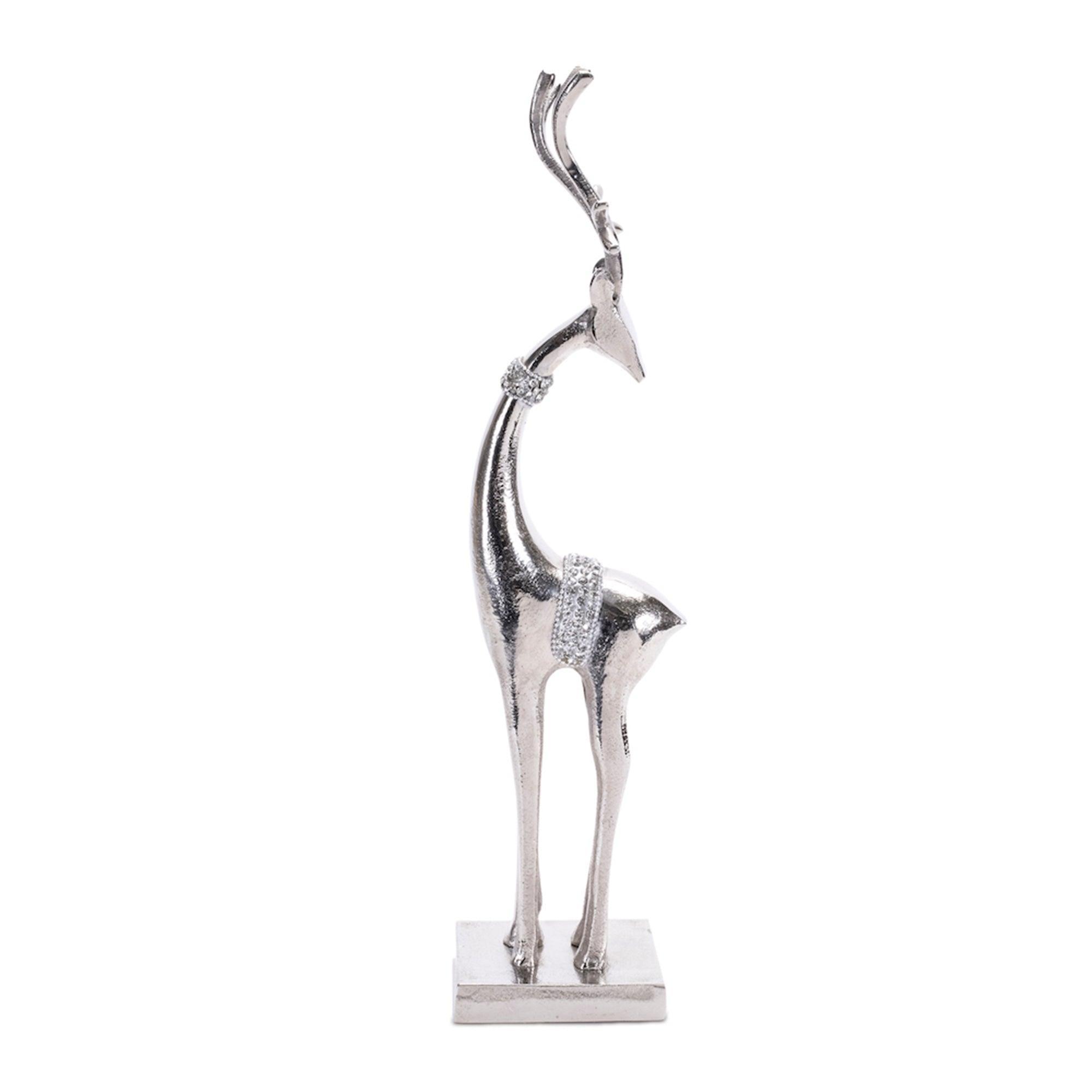 Enhance your winter decor with this beautiful set of Metal Deer Figurines. Featuring two pieces, this set is a great fit for your traditional or modern style of holiday decor. The chic silver finish paired with the tall modern deer character are the perfect combination to create a memorable display. The quality aluminum metal composition is sure to endure for seasons to come. Add the pieces to your mantle or tabletop display or use them as gifts for a special someone in your life.