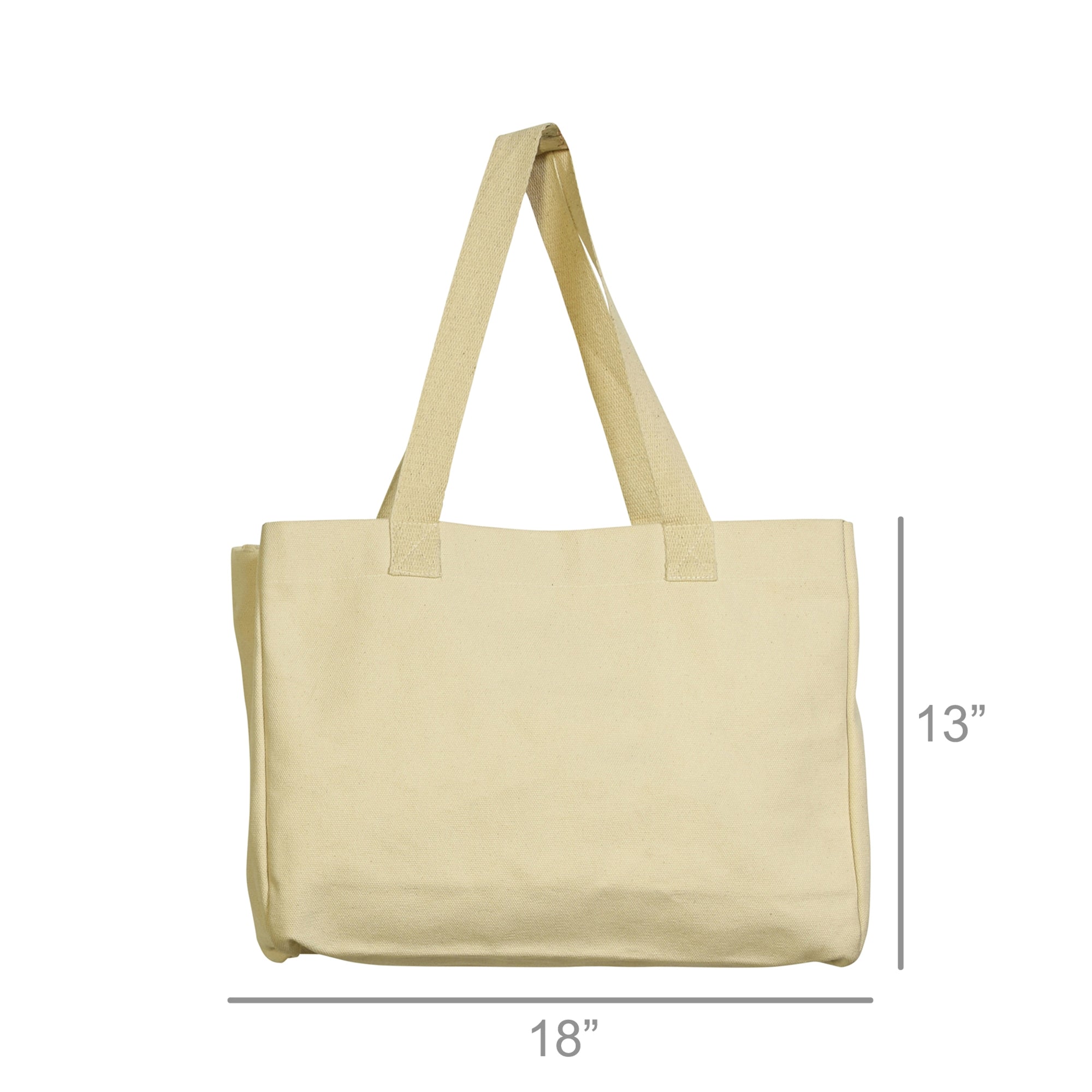 Our well-structured canvas totes serve as a roomy carryall for outing to the beach, days on a boat or errands about town. The lighthearted sayings and bold graphics ensure that this tote will definitely make any day brighter. 12" drop handle. Handle dimensions are 13"