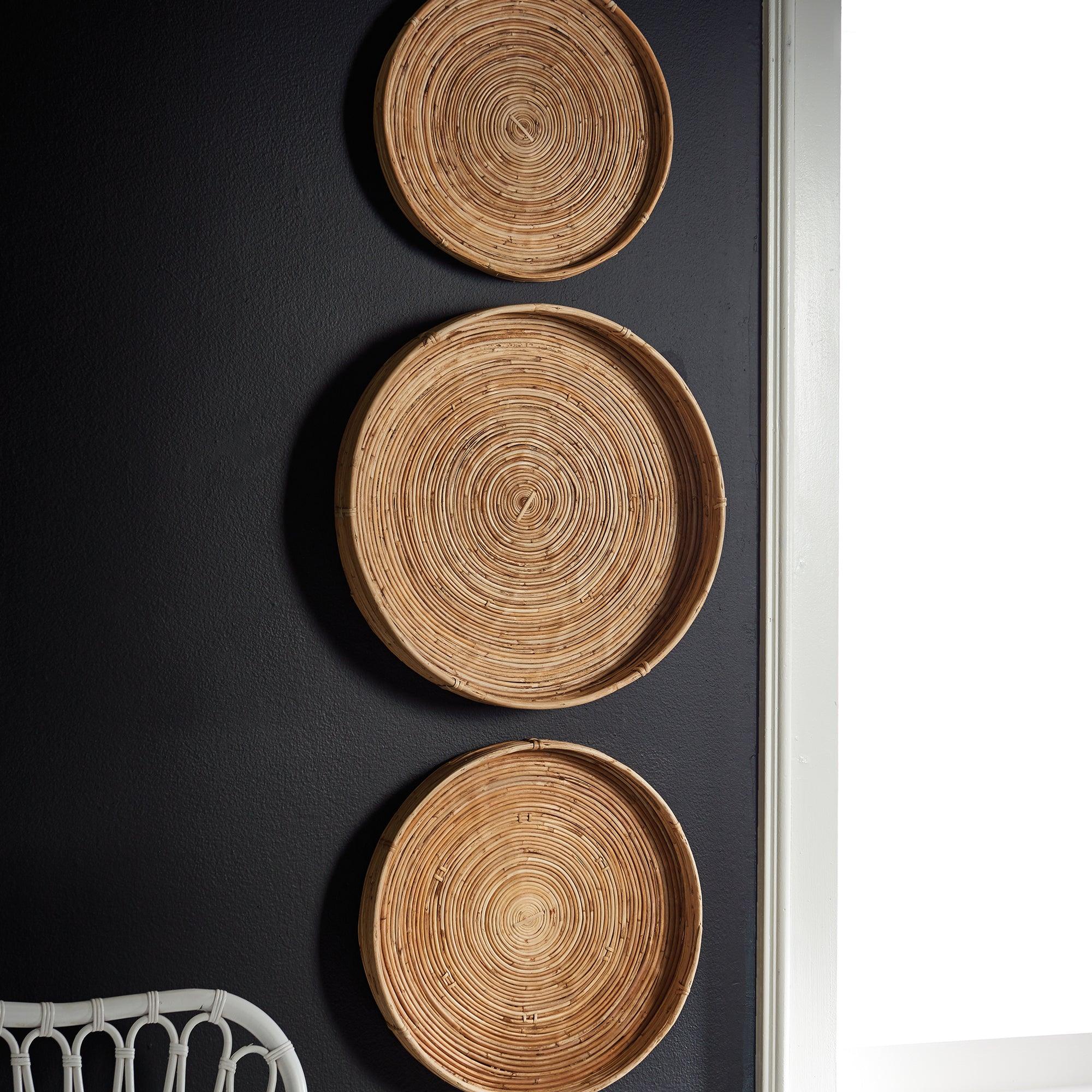 Cane Rattan Round Trays, Set Of 3