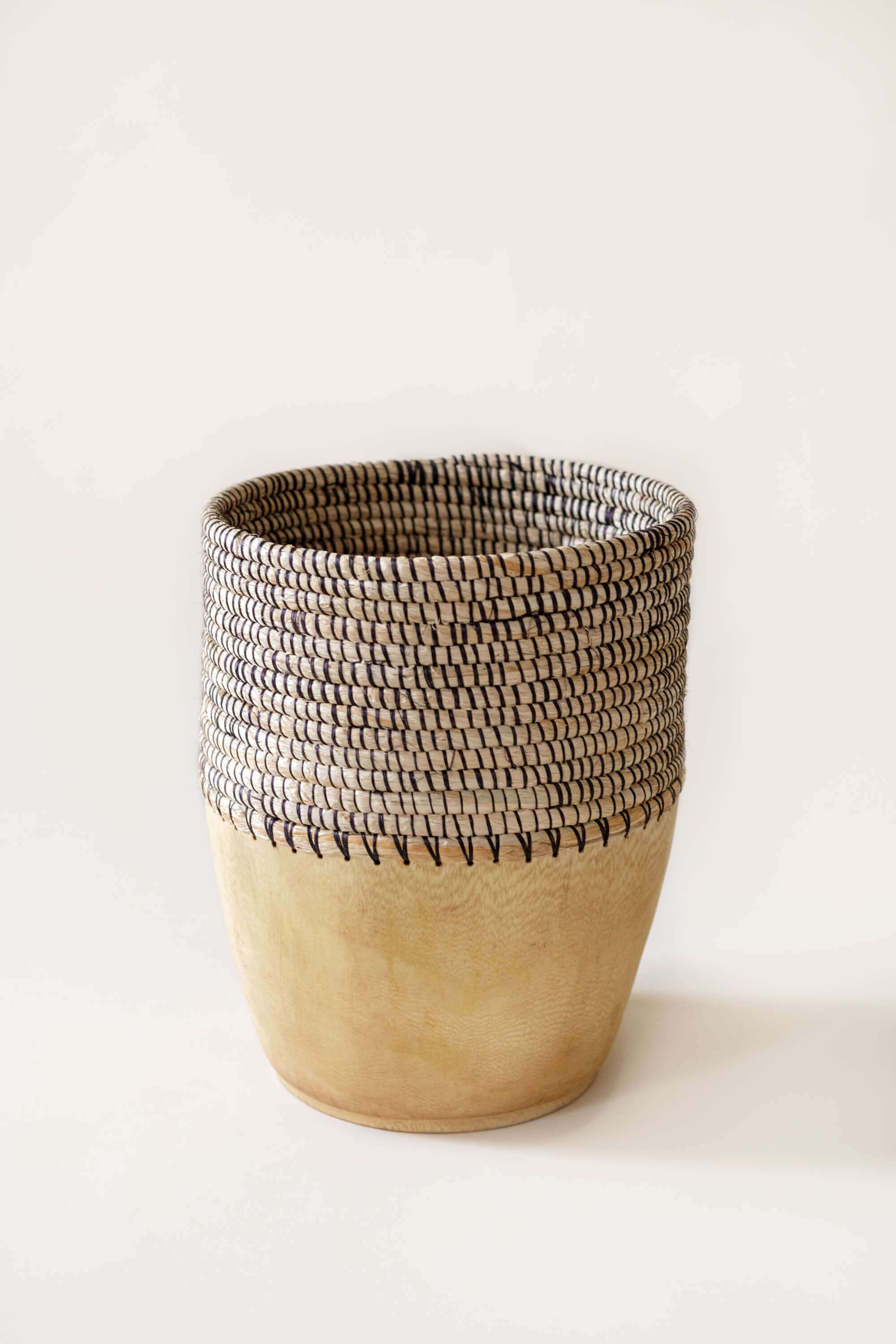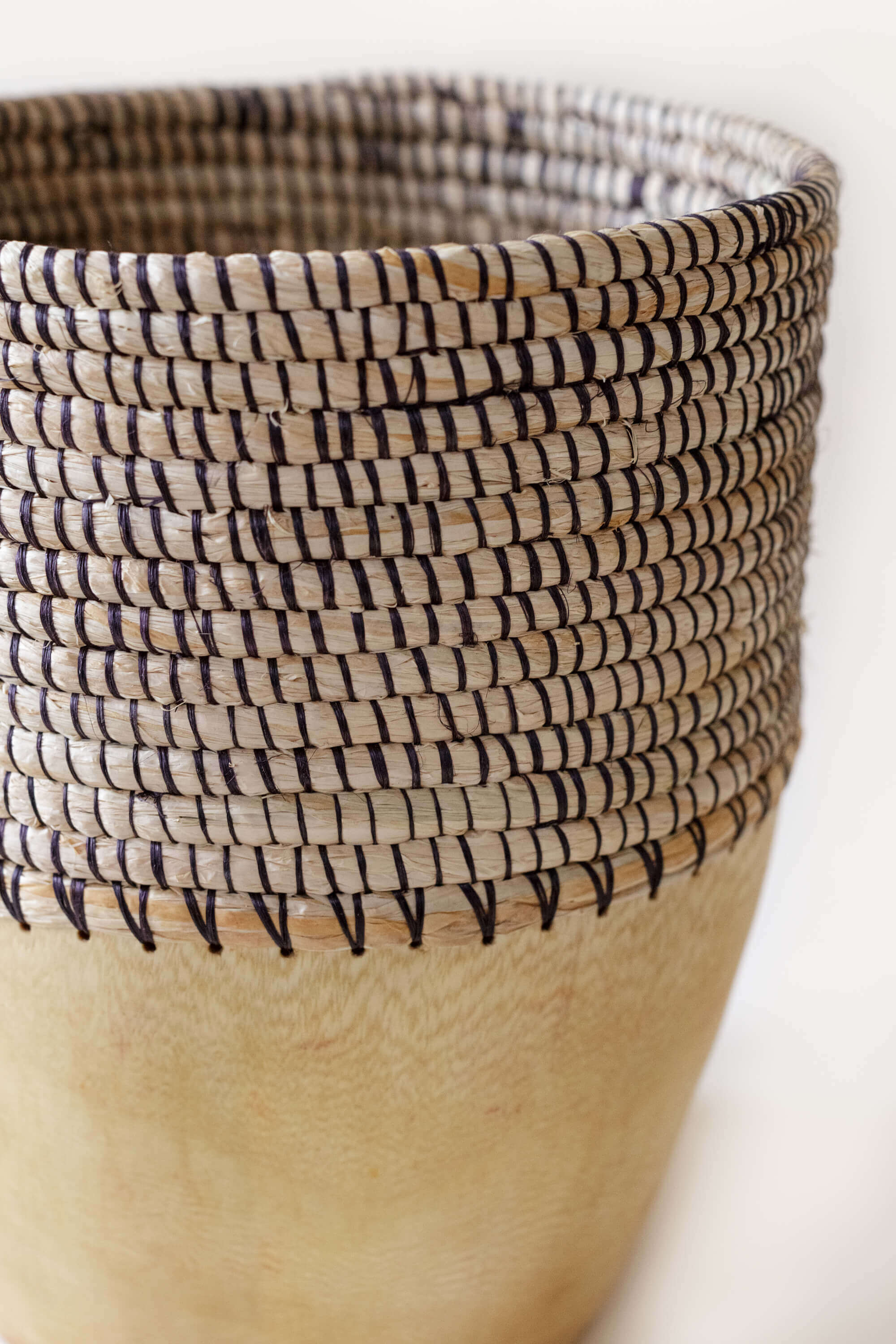 The Copabu Wooden + Woven Vessel elevates a space no matter the contents it is holding.