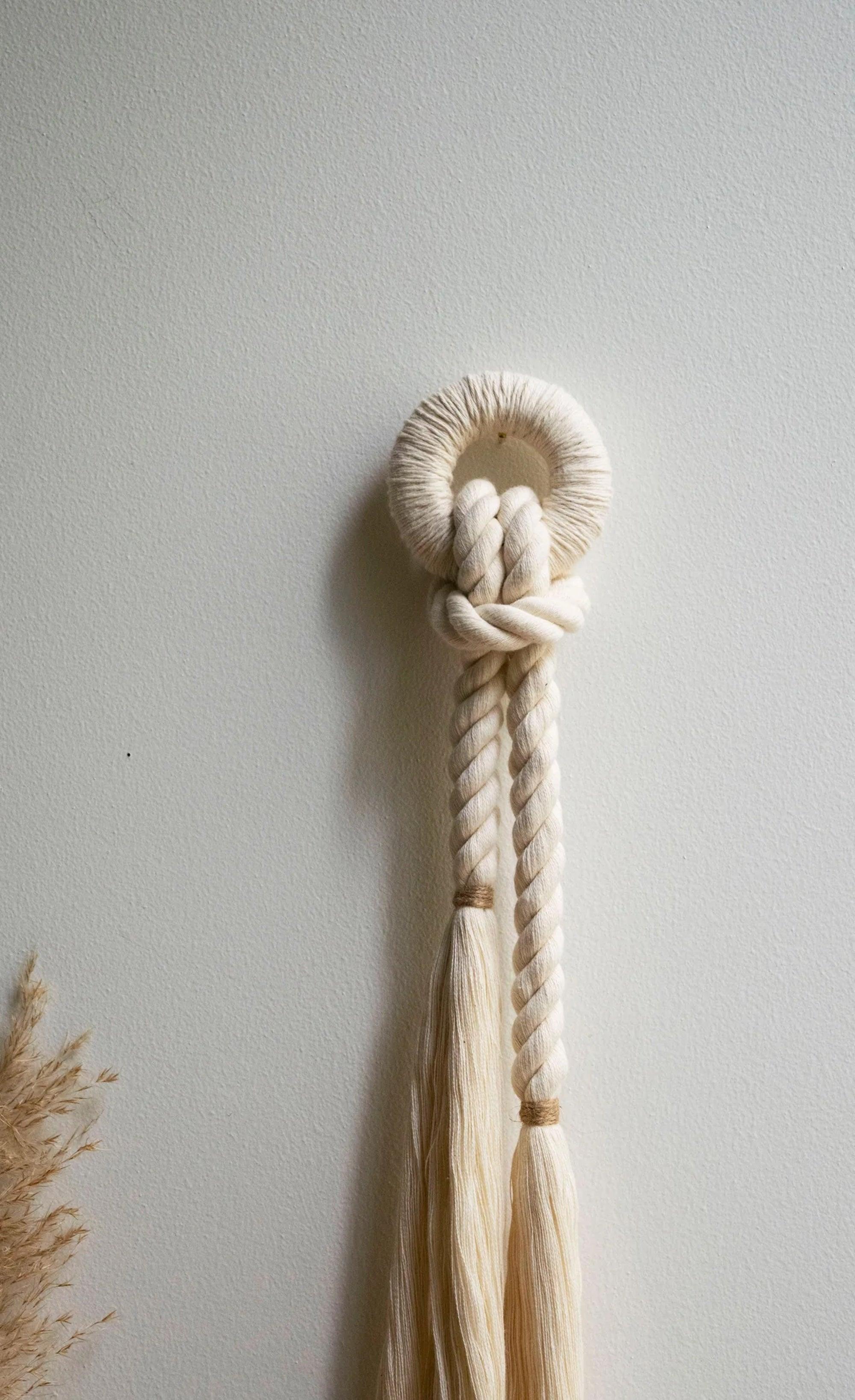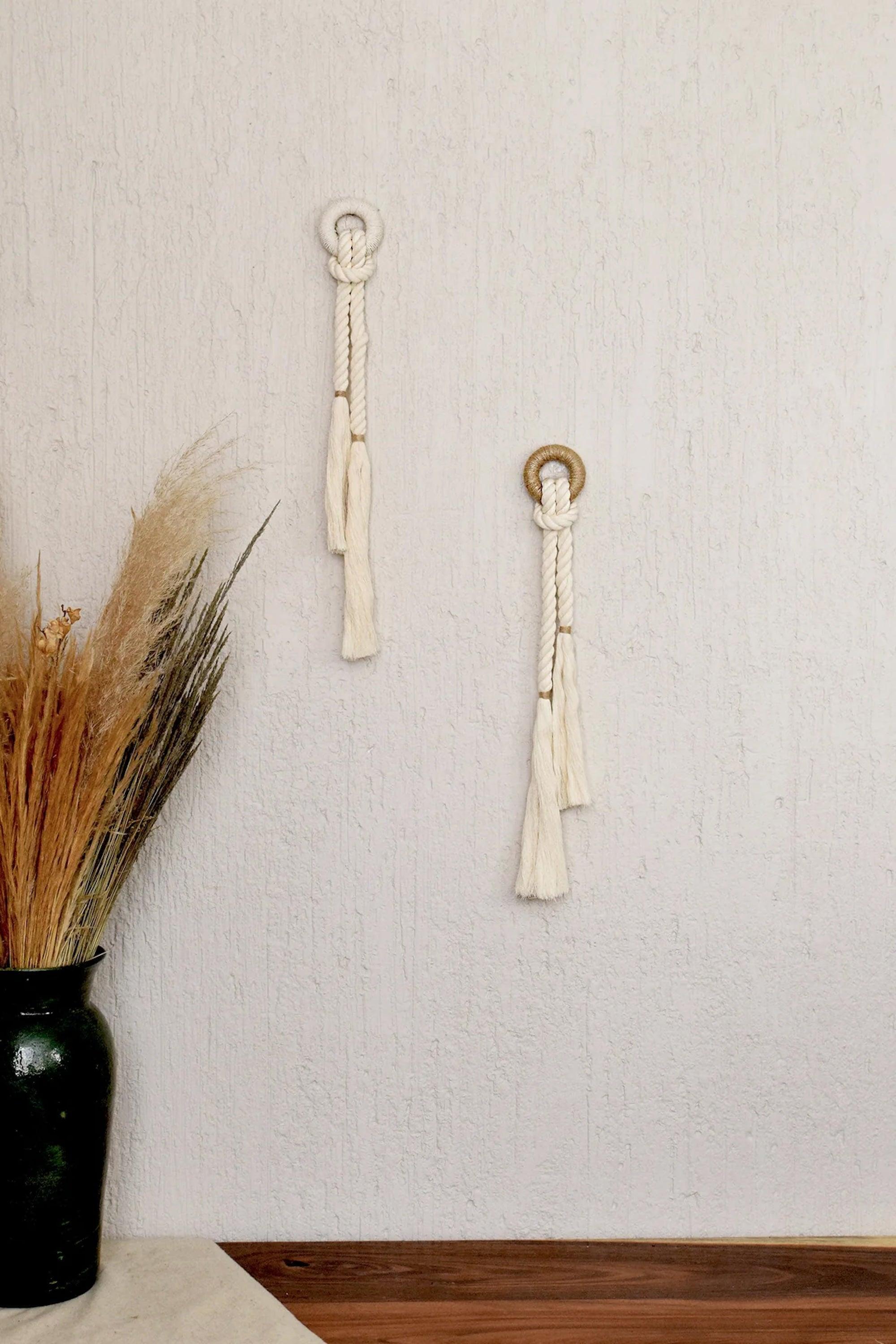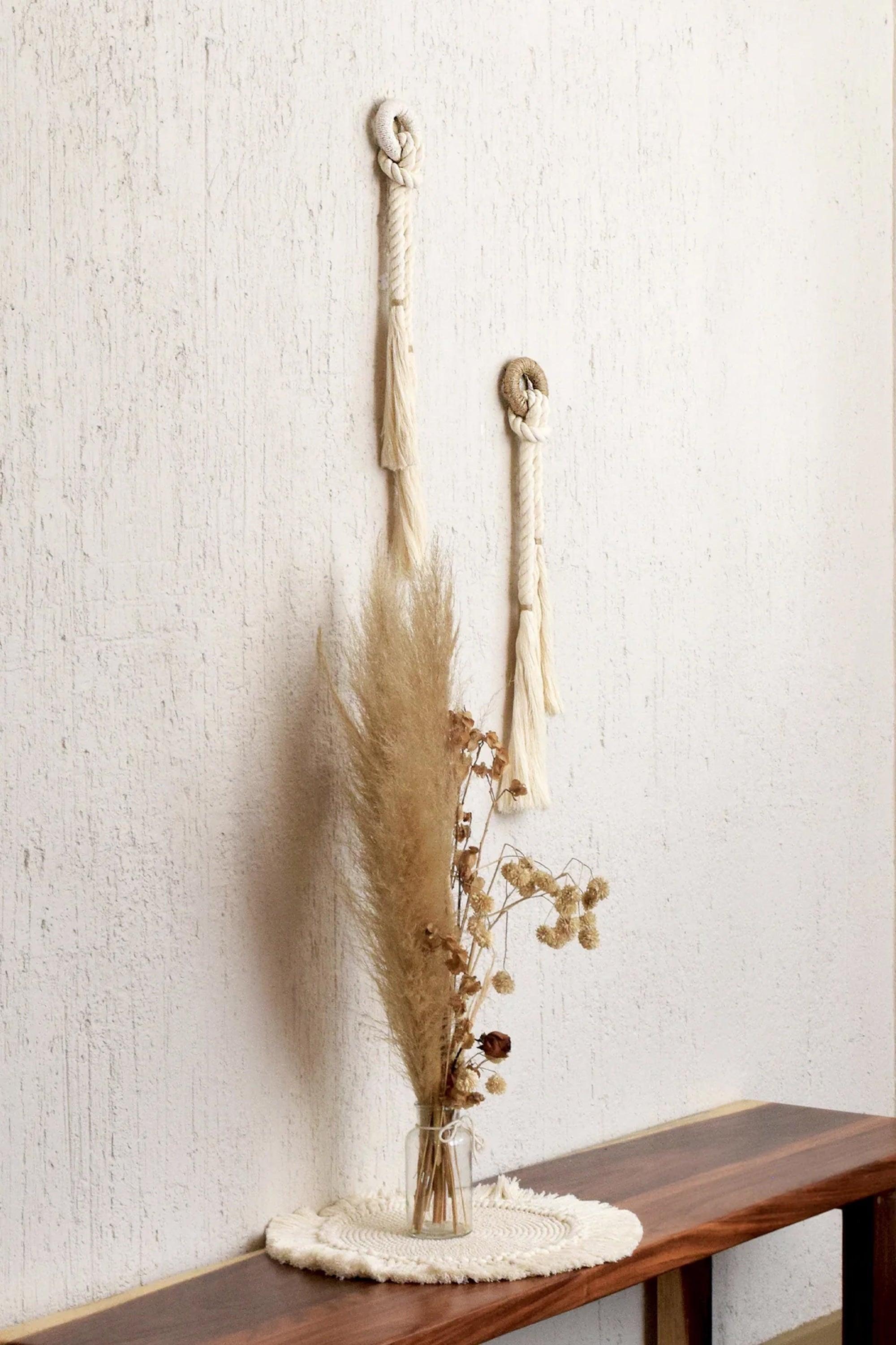 Handcrafted piece with natural cotton fiber rope and color accent with jute. Ideal to complement any wall or corner of your space. Combine them with the rest of the Emma collection!