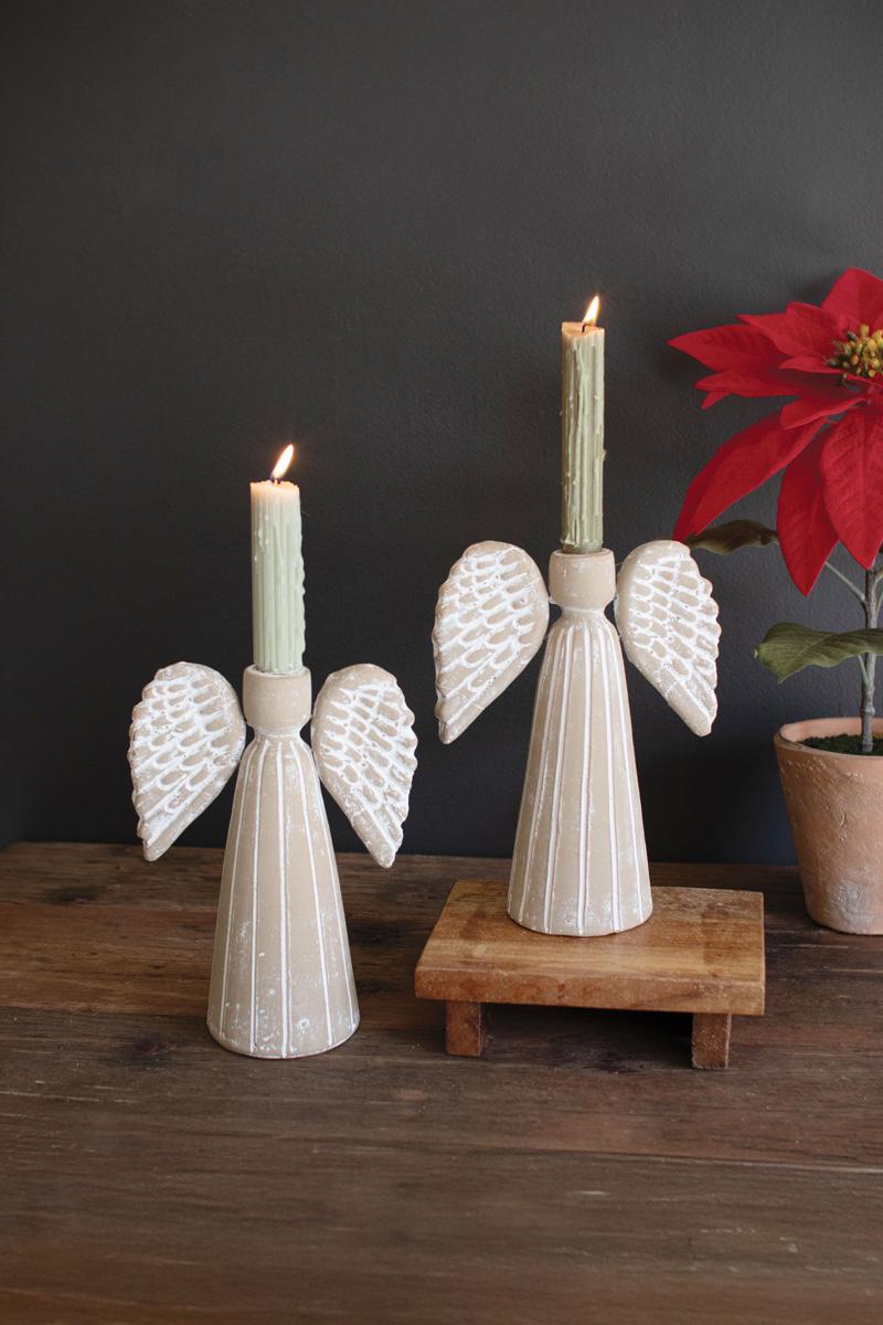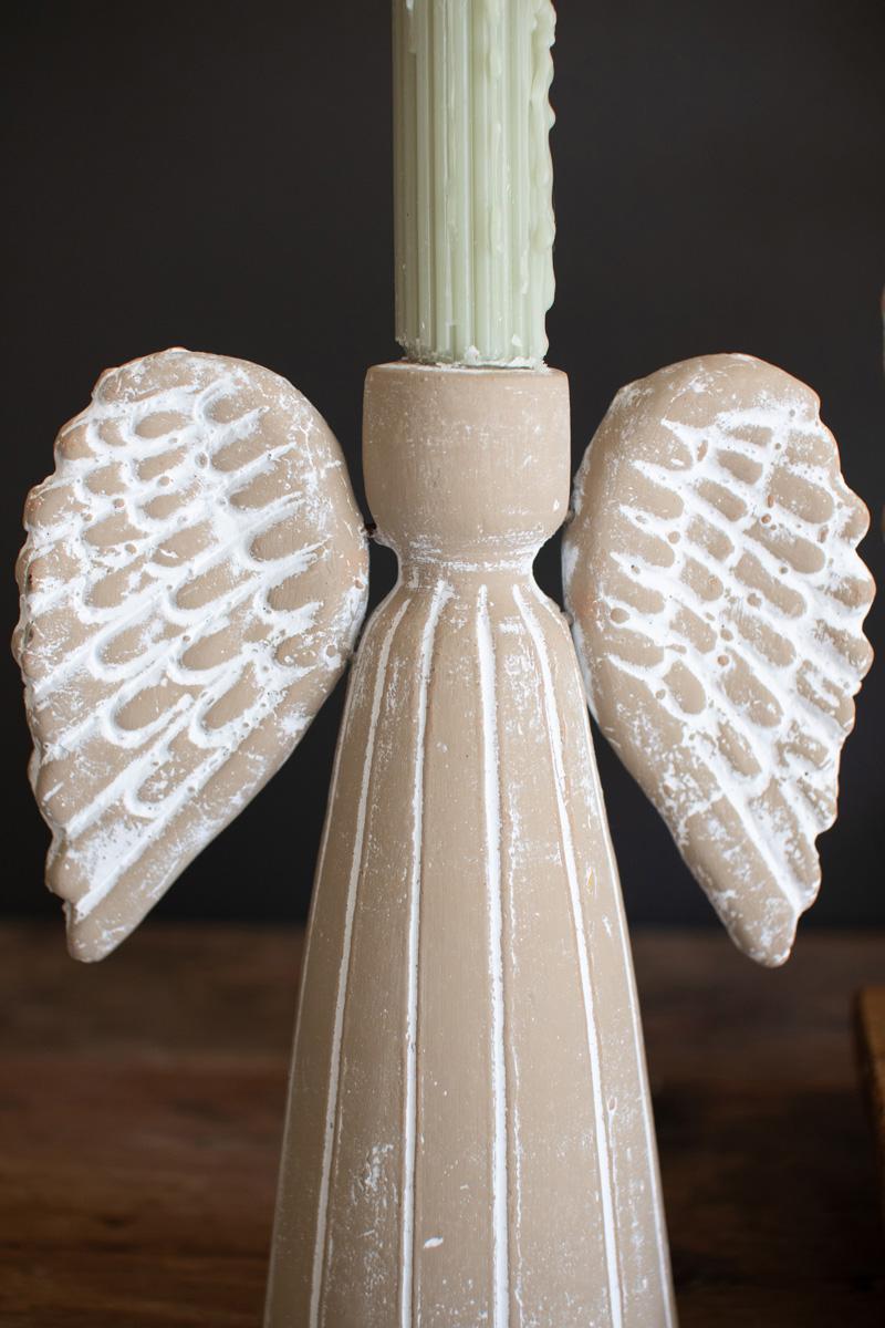 Grey And White Clay Angel Taper Holder (Pack Of 2)