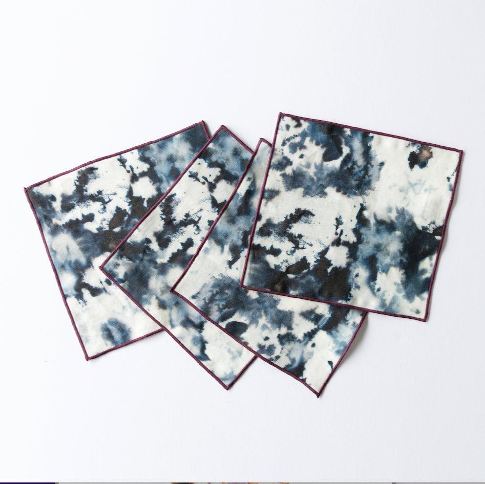 These cocktail napkins add a touch of elegance to any gathering. Choose from a grey, plum, or chartreuse trim. The marble pattern is cool + sophisticated, making them the perfect accessory for your next cocktail party. Designed to be as versatile as they are beautiful. Lay them flat for the perfect aperitivo napkin or fold as a lunch napkin.